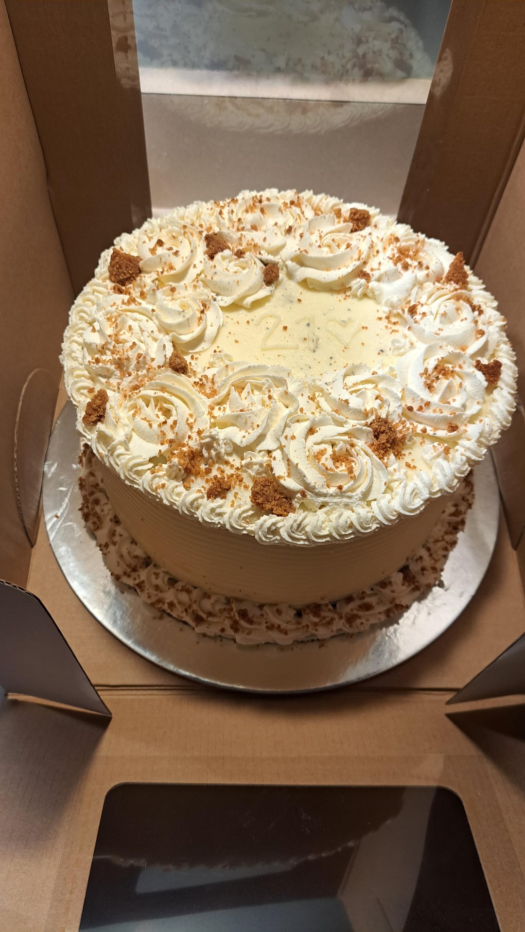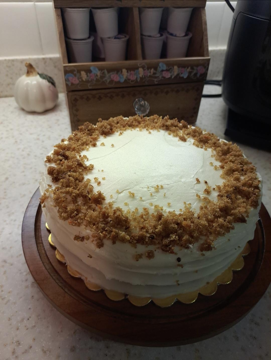 My most recent cake (carrot cake with a cheesecake middle layer and cream cheese frosting) vs my first cake (carrot with cream cheese frosting) about a year ago.
