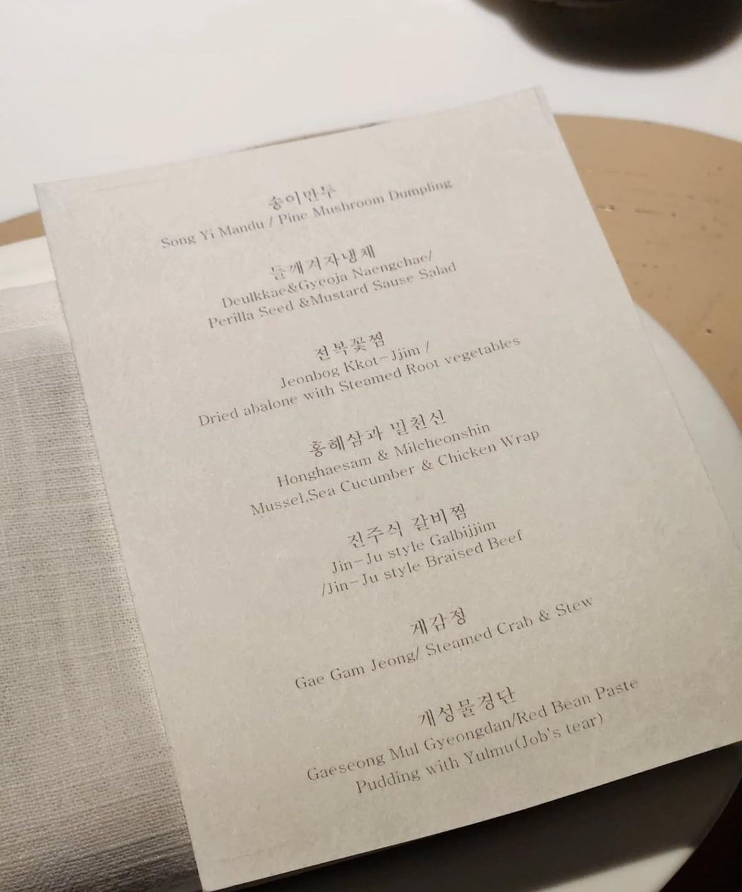 The beautifully conceived traditional Korean dishes at Onjium, are born from extensive research, and are truly remarkable. the chef gave us one of his cookbooks on the way out and it was a perfect gift . The menu is based on the noble class cuisine influenced by royal court food from the Joseon era. Everything is being paired with traditional liqueur and rice wine. Service is very casual but still professional, our waitress spoke perfectly English and could guide us through the menu. We would return back to the restaurant asap, it was really a unique experience to see Korean cuisine in its core.