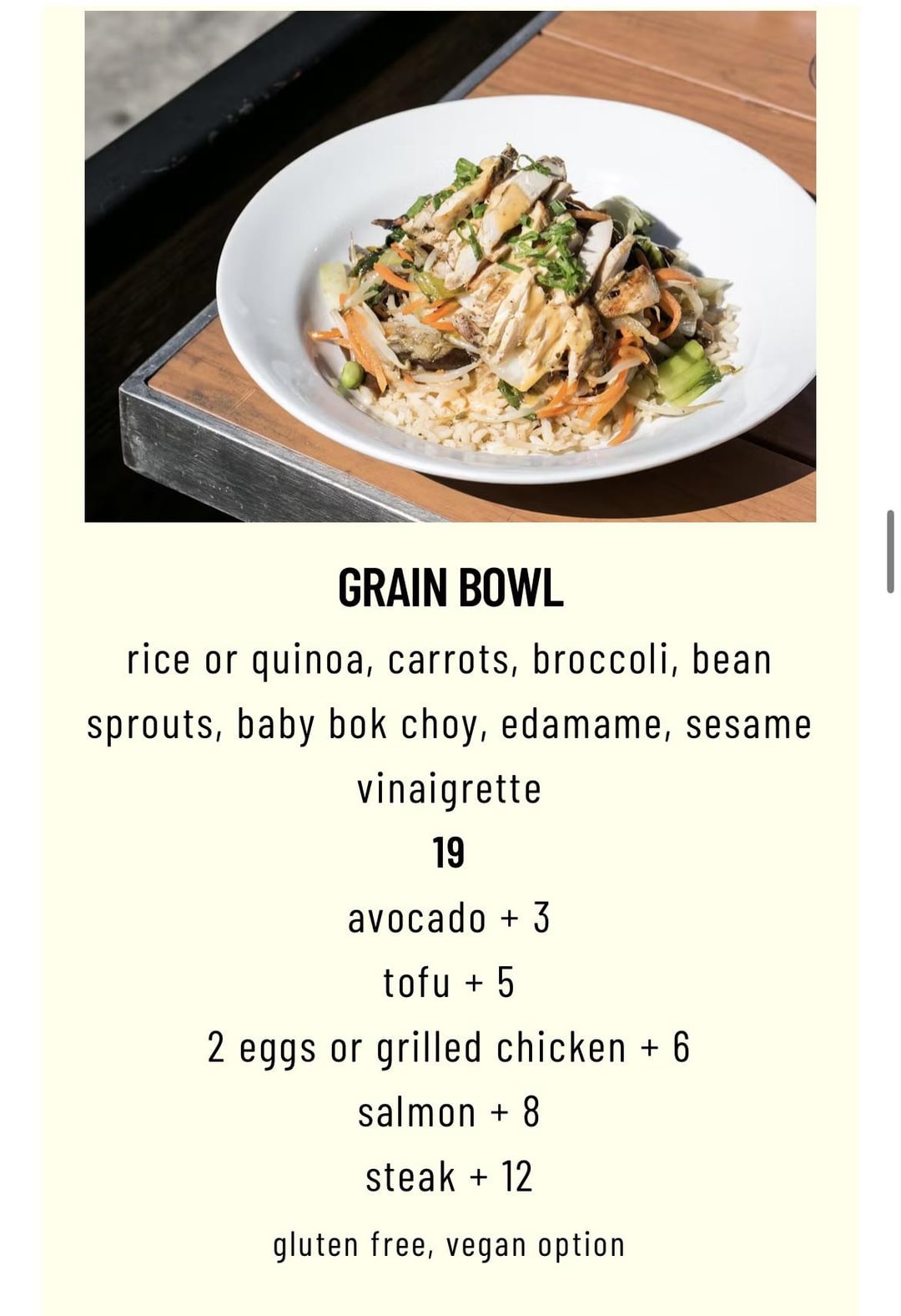 For the salad I would likely ask for light dressing and no rice noodles but ask for grilled chicken. For the grain bowl I would do grilled chicken, likely quinoa over rice (whichever is fewer calories) and then light dressing.