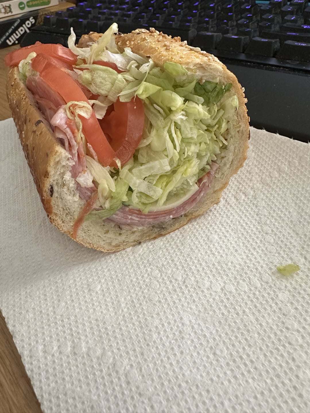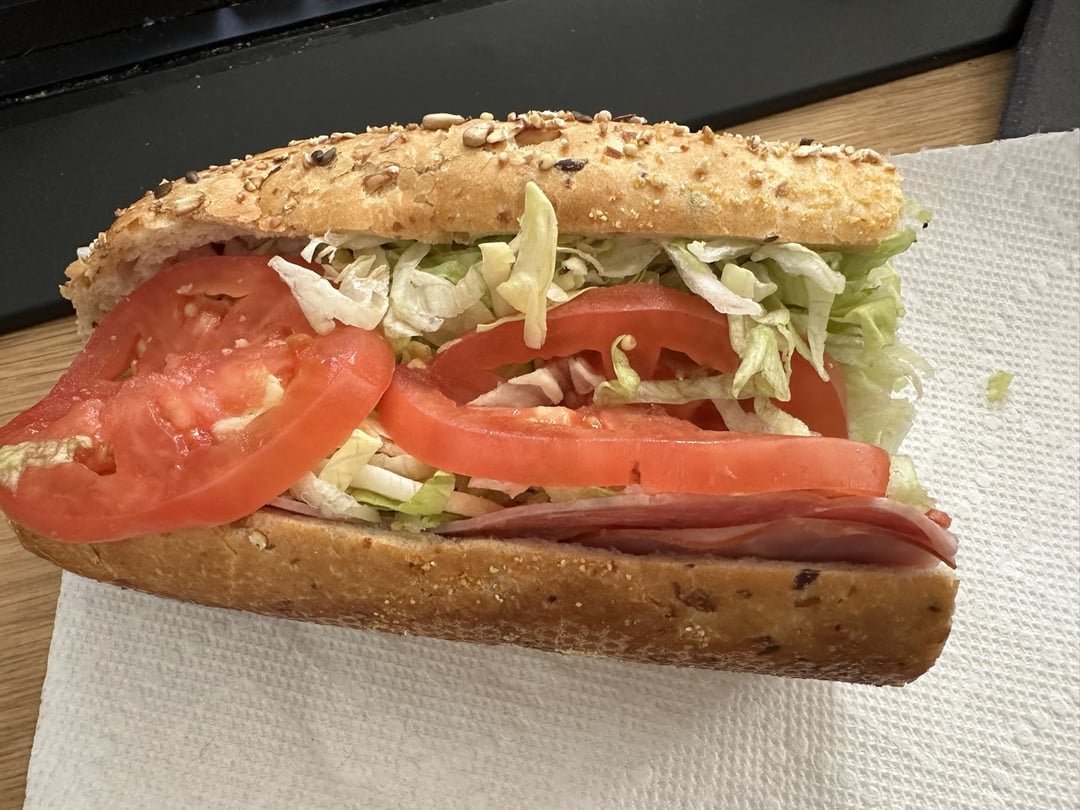 Little too much lettuce for my liking but took some off. Added sub sauce. Have some Giardiniera downstairs for the other half tomorrow.