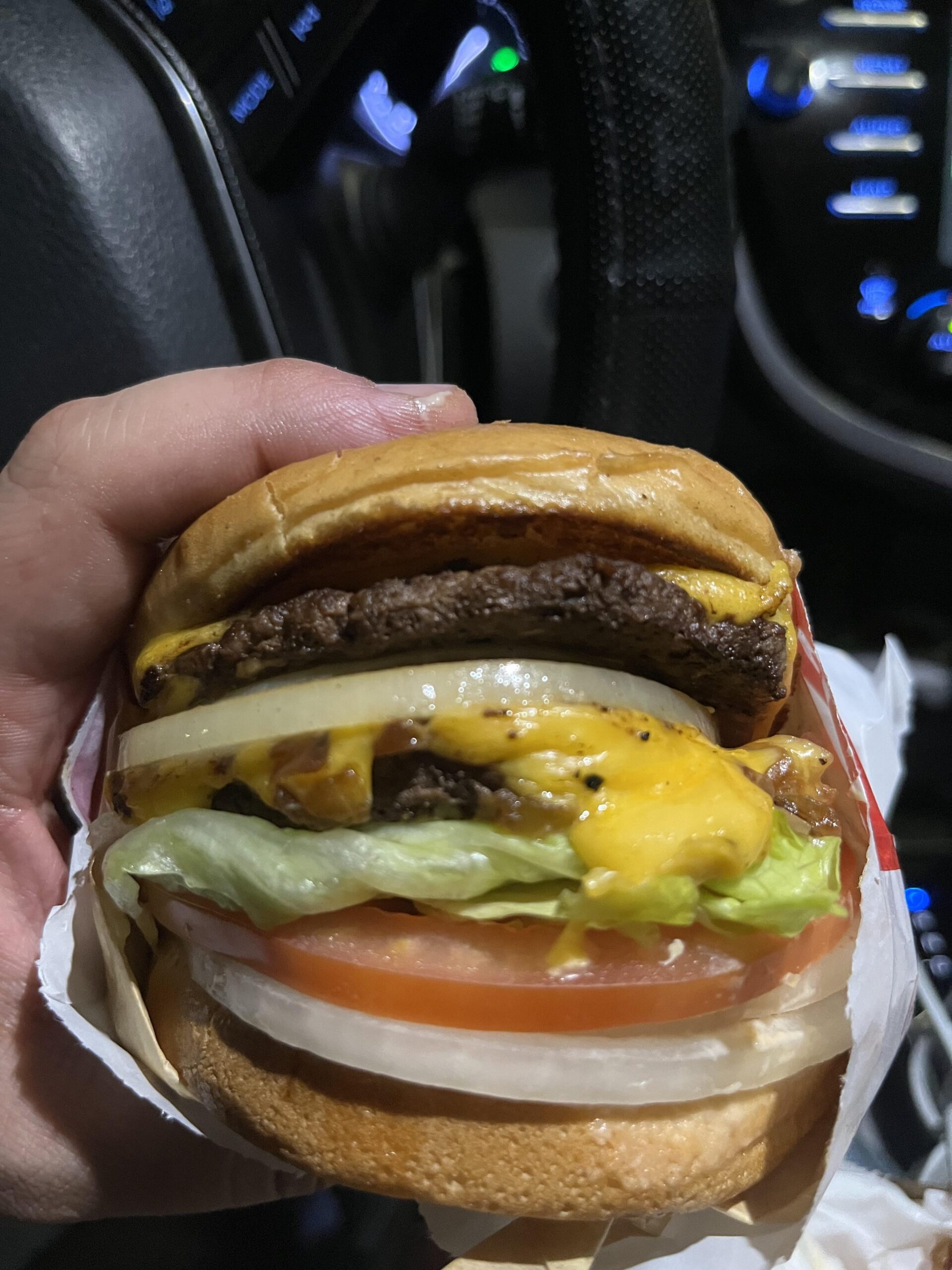 Double double with whole raw, chopped raw, grilled and whole grilled onion plus chopped chilies.by soggyfries8687678 Write A CommentYou must be logged in to post a comment.
