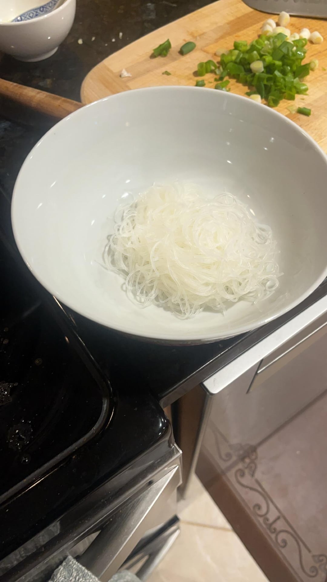 The second photo shows how much of the rice noodle i used. it’s like an asian inspired chicken noodle soup; the meat is chicken breast and there was a kinda hefty amount there is also carrots, celery, and green onion. the broth was made with chicken stock and a shit ton of oil as you can see bc the oil floated to the top. i’m thinking like 600 calories?