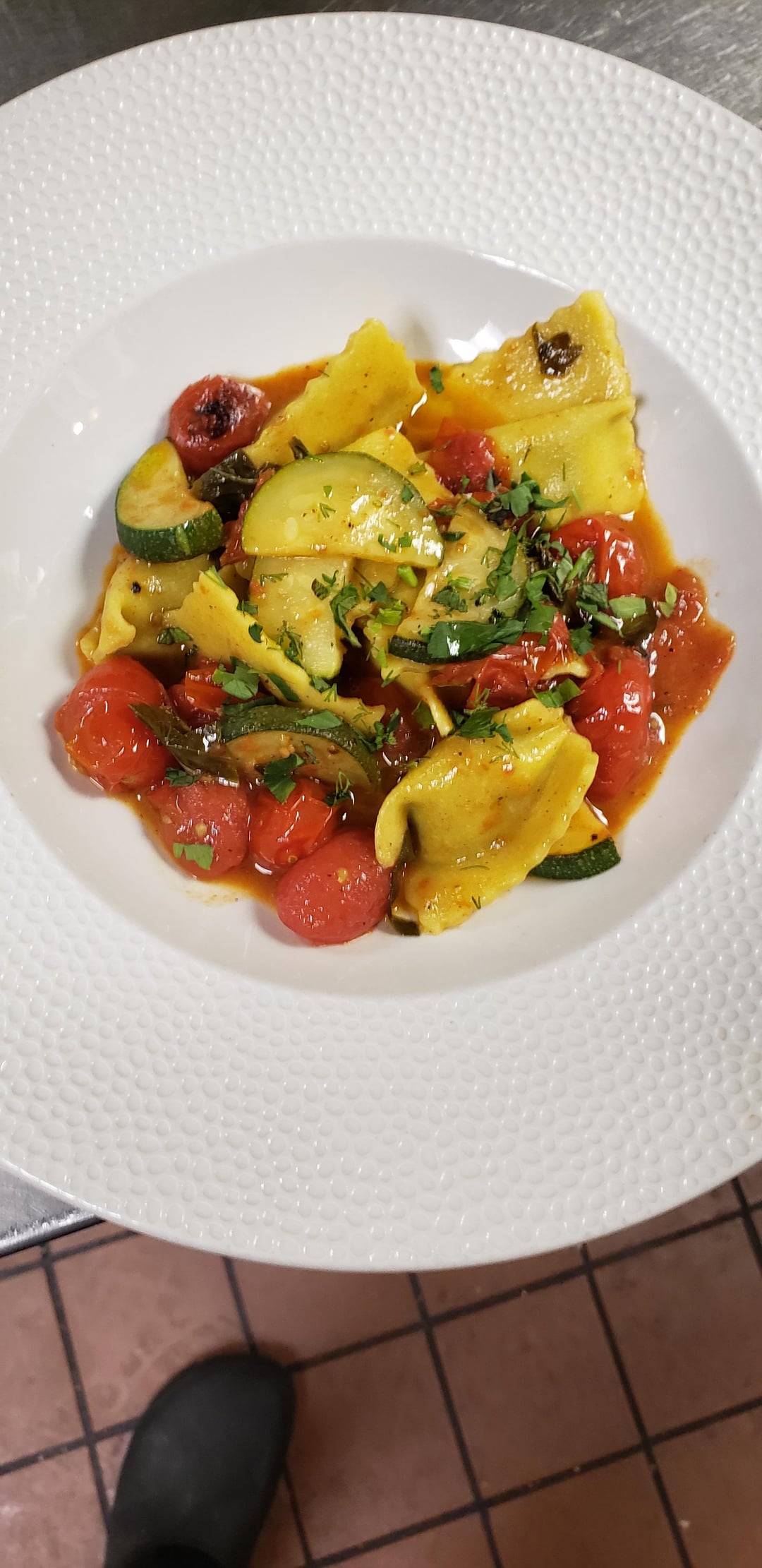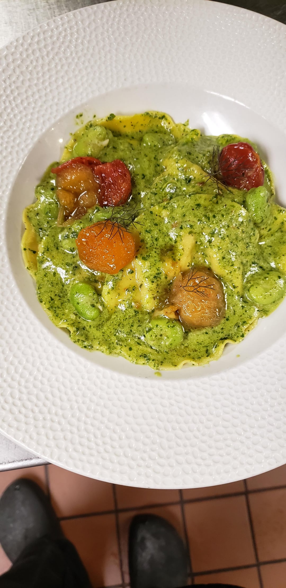 2. I honestly have no memory of the filling, a sauce with parsley and dandelion, agrodolce tomato