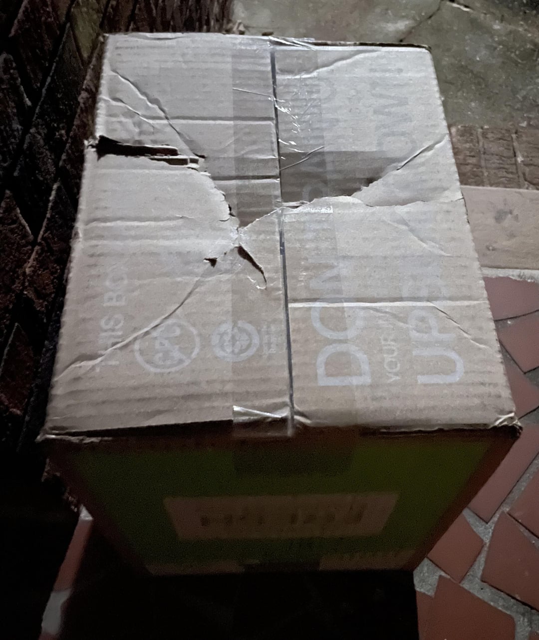 So my order was delayed by a day then showed up like someone punched the top of the box.