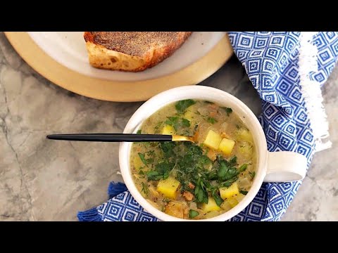 This isn’t your typical chowder. In this season 5 segment of Weekends with Yankee (episode 504), Amy is making a Rhode Island-style clam chowder. The key distinguisher of this chowder is a clear broth. Amy starts by rendering bacon for a smokey, salty flavor. Then, in the bacon fat, she sweats celery and onion. She uses store-bought clam juice as the broth, boiling cubed potatoes until tender. For the final touch, she tops her chowder with a pinch of parsley, dill, and chives. Paired with a loaf of crunchy bread, this clam chowder is hearty and filling.