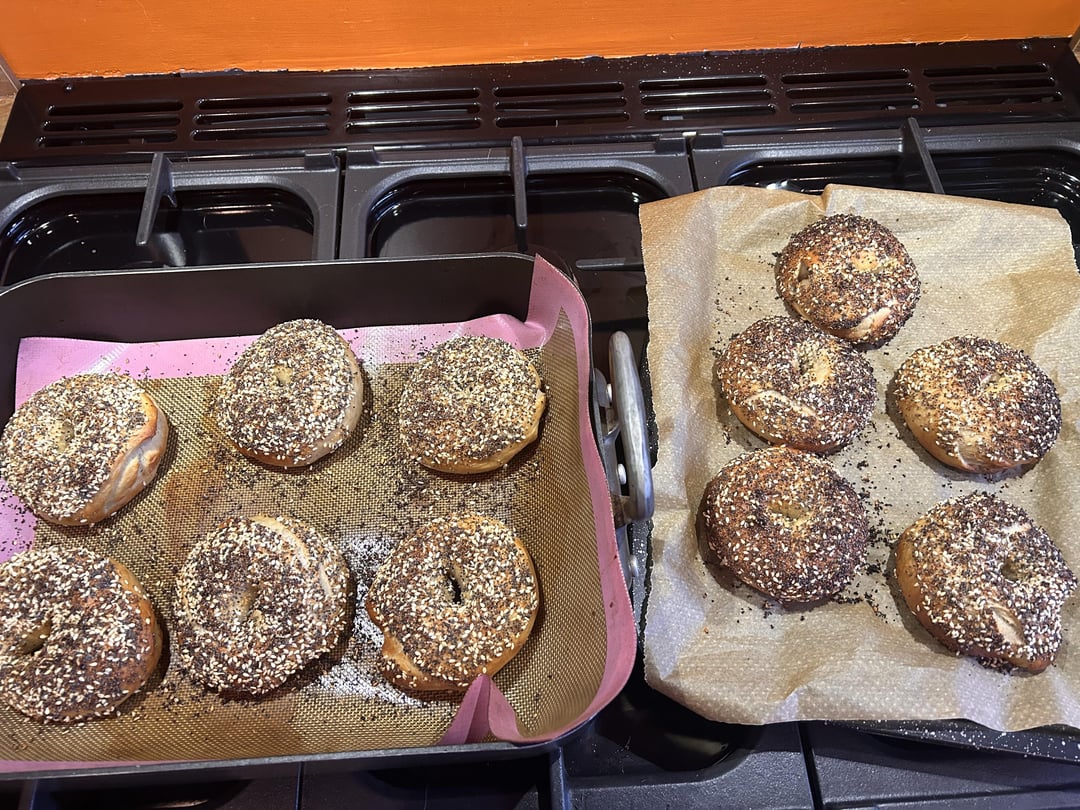 Home made bagel, home made crispy fried shallot and chilli in oil. Xx