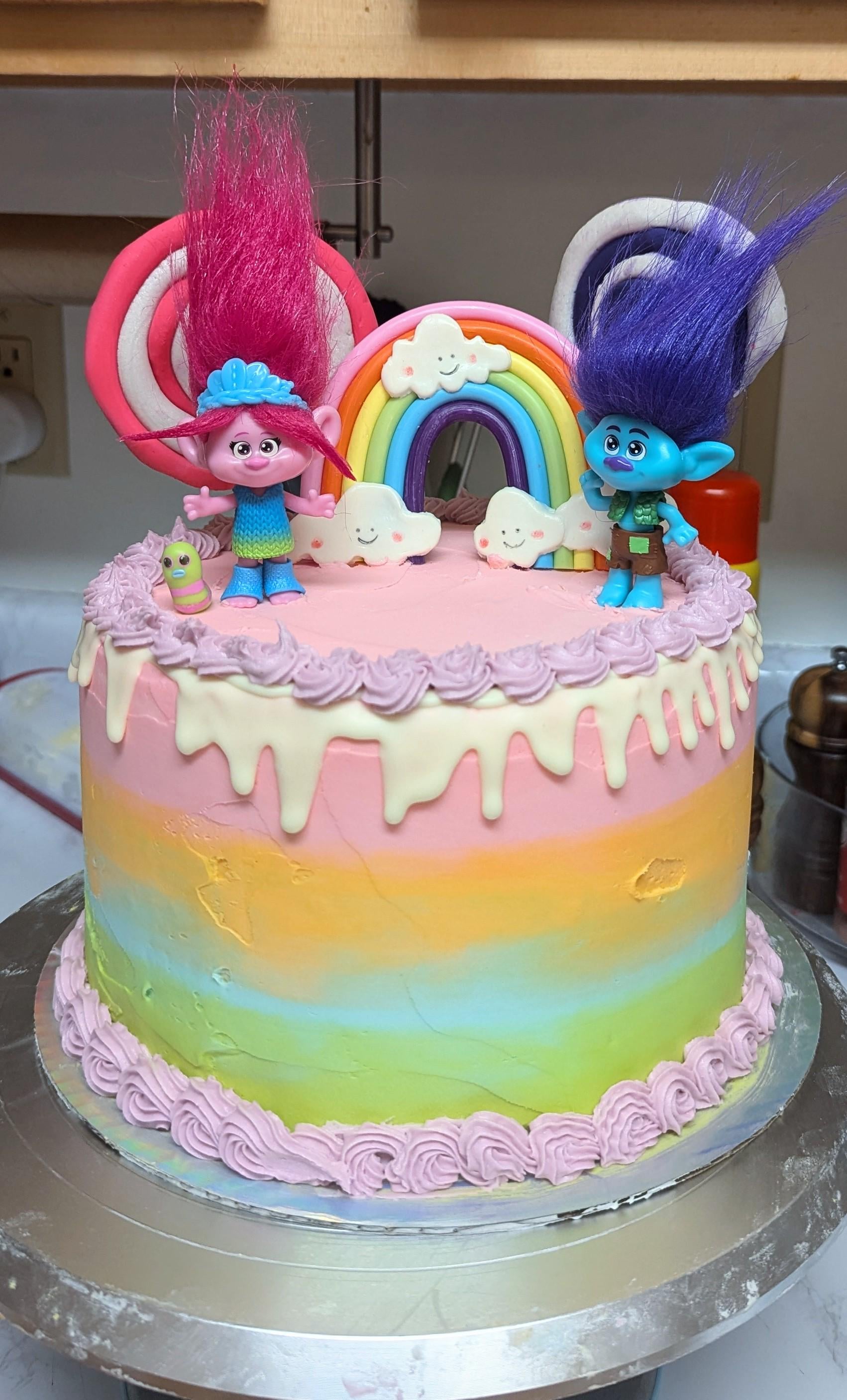 Does anyone have tips on how I can smooth the frosting and get rid of the bubbles/bumps? The cake is currently frozen. I'm making this for my daughter's friends birthday. I rushed the piping but the bumpy frosting is bothering me.