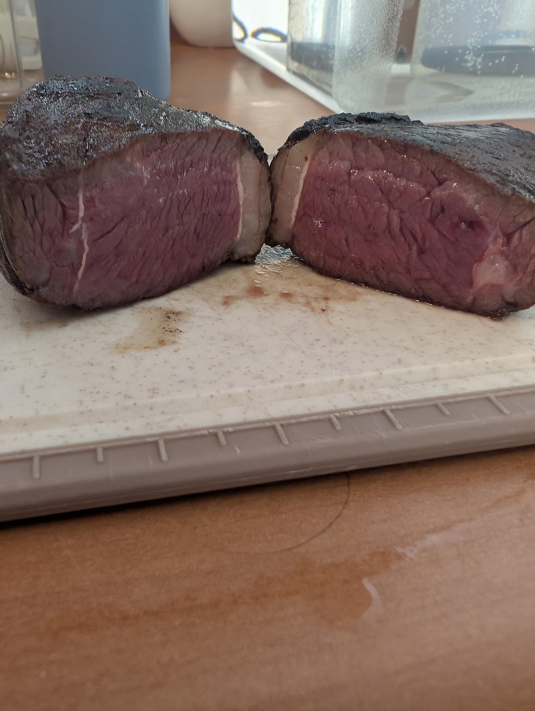 Steak was cooked 120°/4 hrs and seared on cast iron. How did I do?