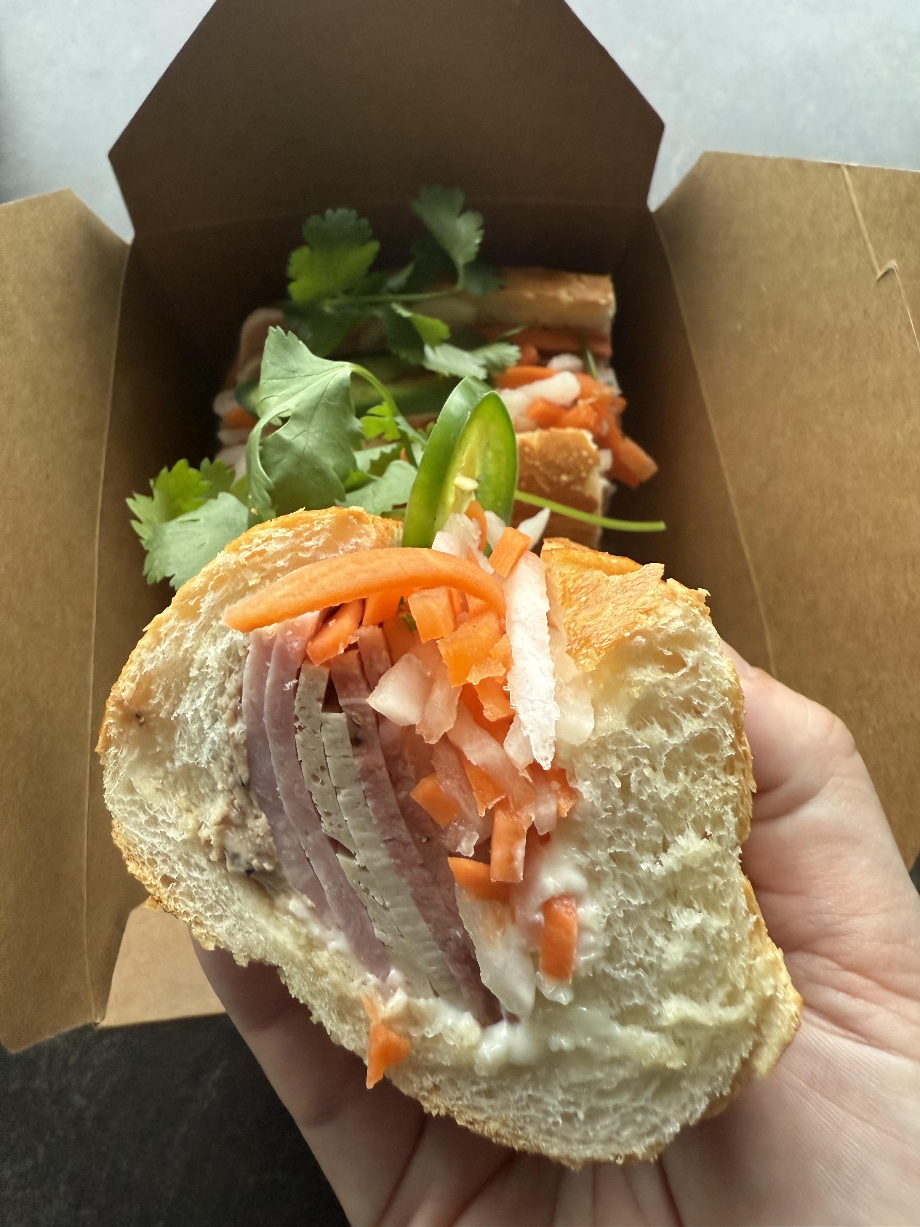 my recent fave is in OC/socal area–pickle’s banh mi with their crispy pork belly banh mi. du ma it’s so good haha