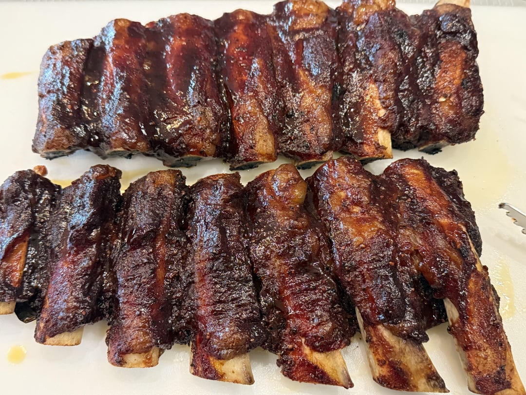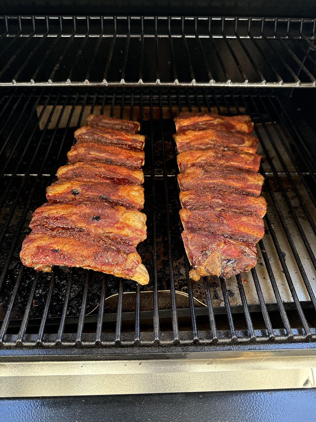 So I have a 575pro I’ve been trying new things and ribs I have never been good at doing, but I have to say this is freaking delicious. Used meat church holy cow I forgot a binder oops! BTW are binder really necessary? I find myself forgetting to use them quite often. On for 2 hours at 250 did a foil wrap for another hour thirty at same temp then uncovered and used kinder bbq sauce for last 30 mins at 300 and they pulled a final temp of 205. I left the membrane on because these were not the meatiest bones and didn’t want the falling apart. Overall I’m happy with the way they came out.