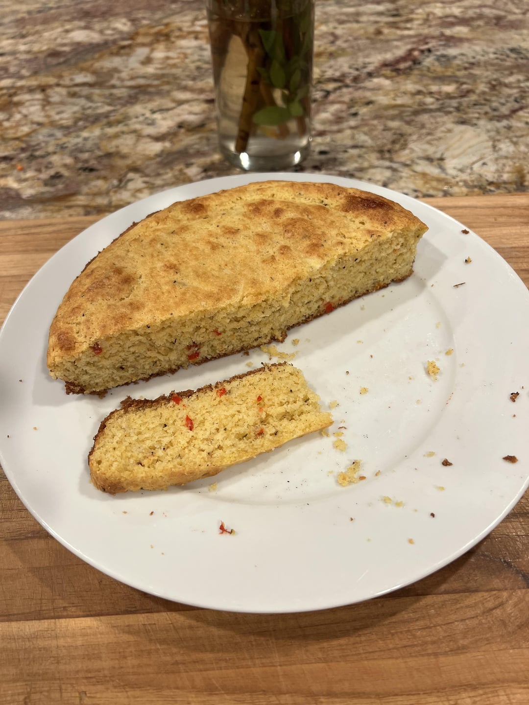 The creamy tomato soup is made with fresh basil from our garden, and the cornbread is spiced with our homegrown cayenne pepper.