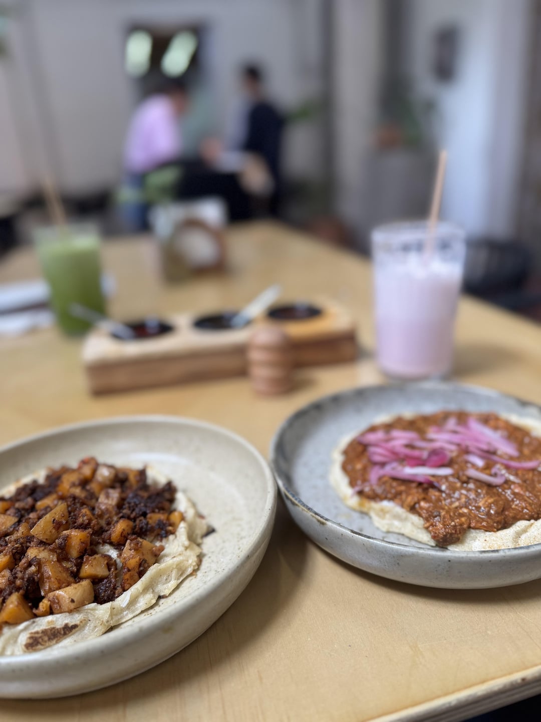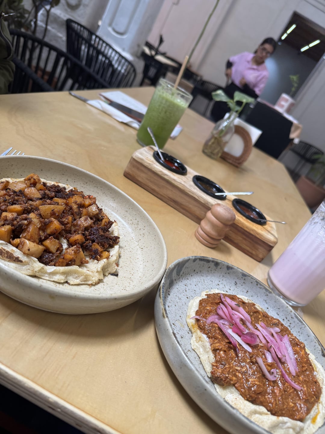 Left is Chorizo y Papas (similar to a corn beef hash actually)