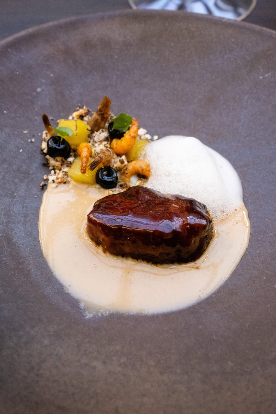 -*Pike-perch, apple syrup, Riesling “1993”. At 45 euros this was totally worth it, a reinterpretation from a classic back when they got their first Michelin star. We were still high, now a little bit drunk and having a great time so I asked them if we could order a second one. Sara was surprised but immediately said she would check with the kitchen, a moment later came back with the good knew. This course was assembled in front of the table, we thought we would only get the plate served.