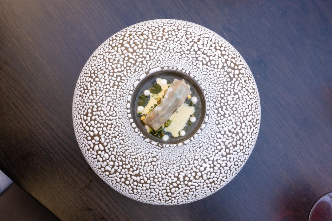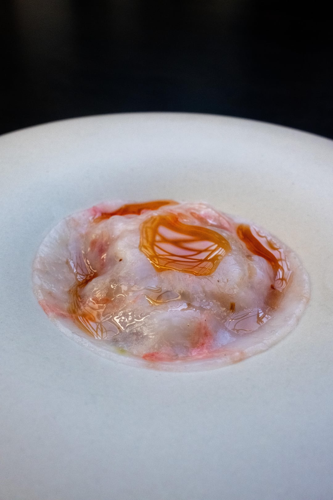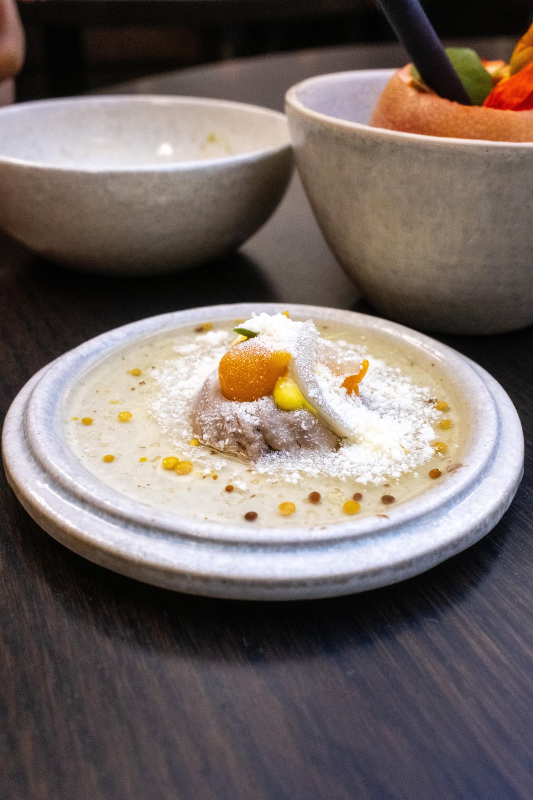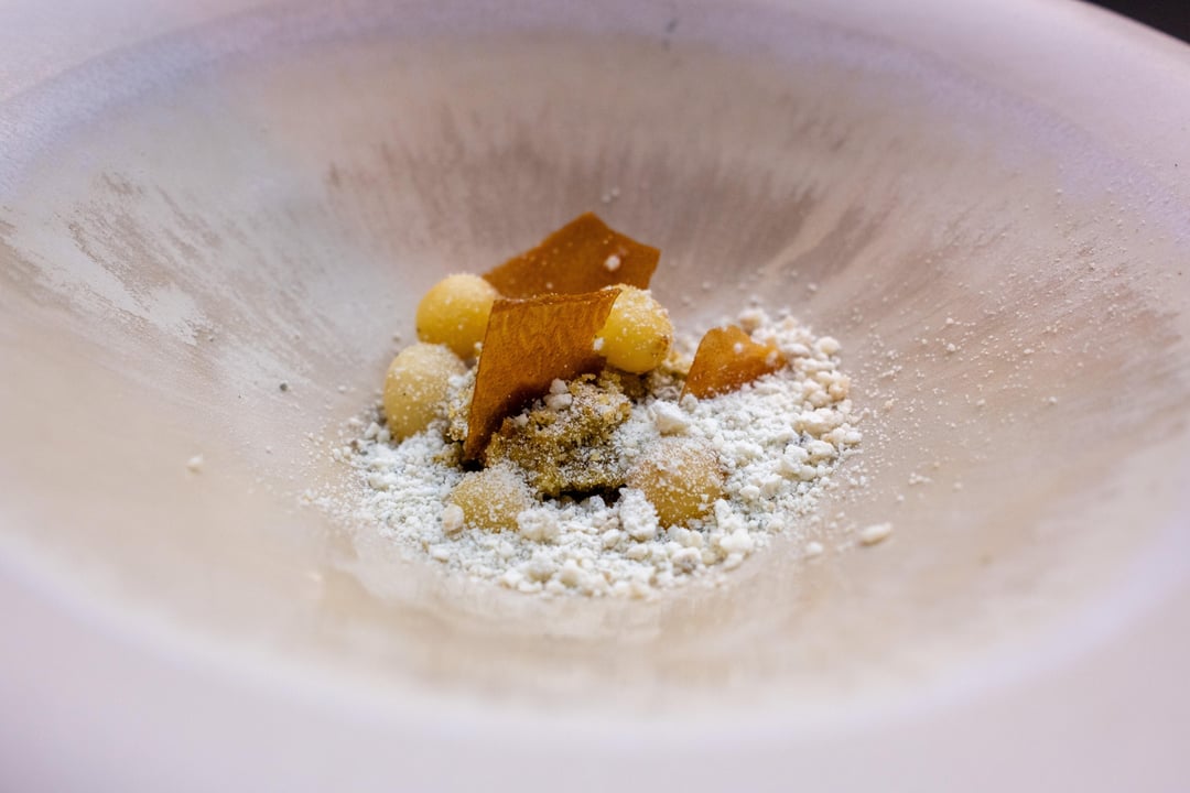 -Weever, green pepper, seaweed. Contender for our favorite course of the meal, here flavors were totally familiar. This tasted like “rajas con crema” something very traditional in Mexico, we loved it!