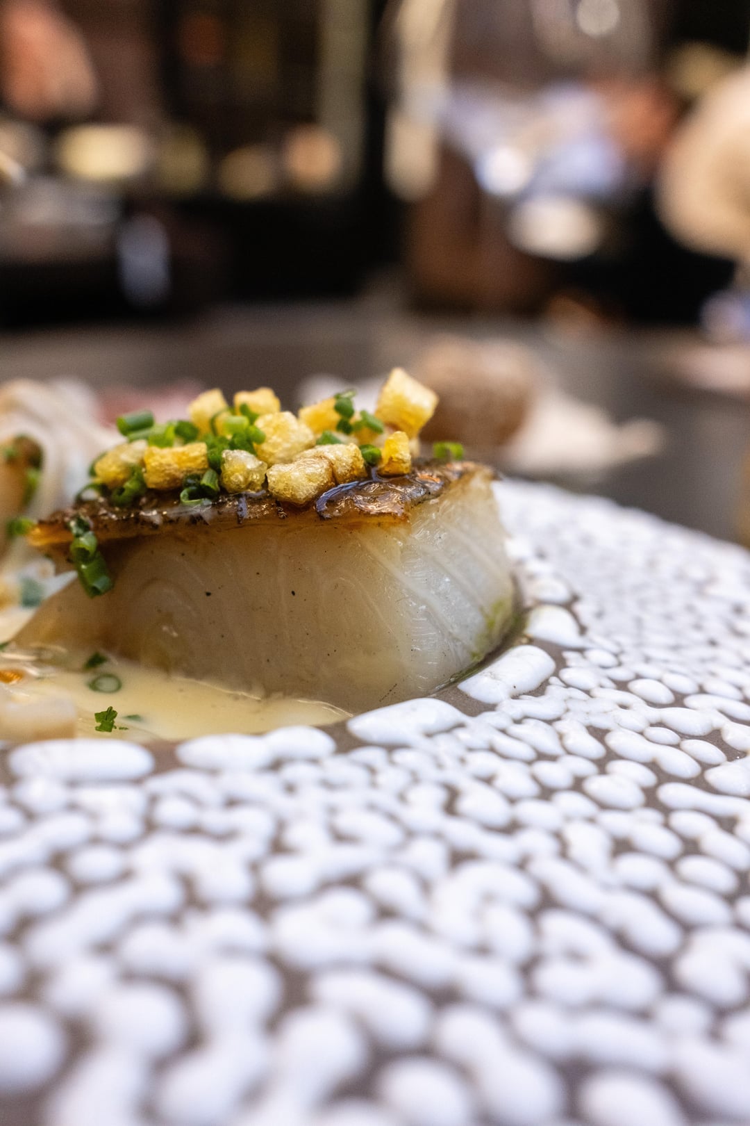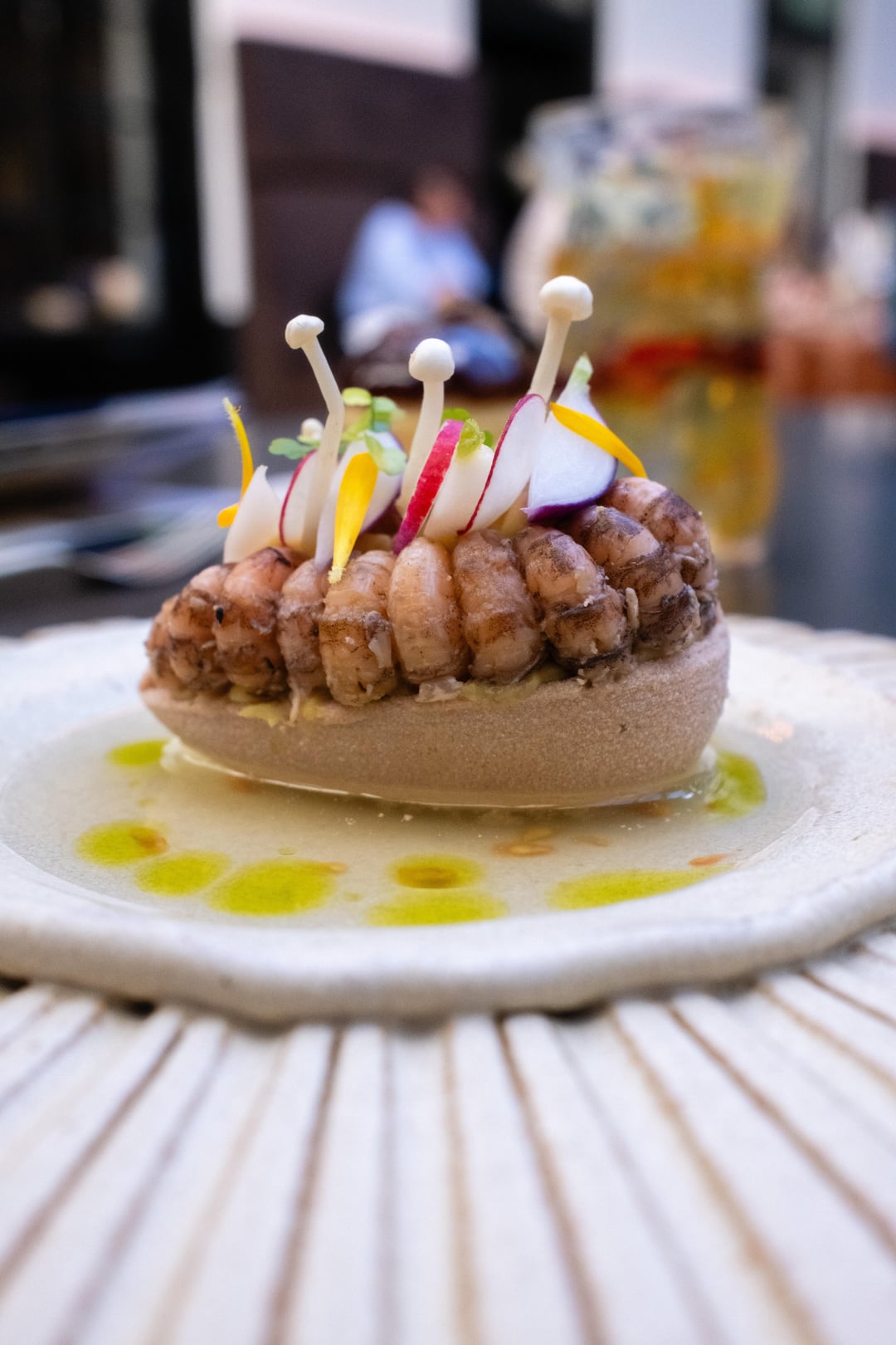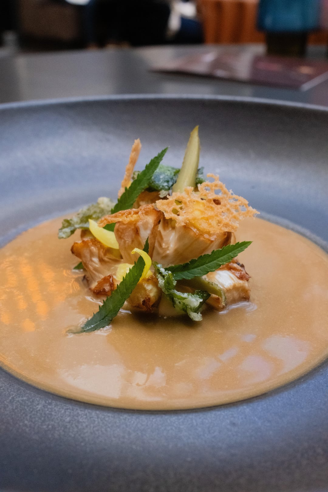 -Weever, green pepper, seaweed. Contender for our favorite course of the meal, here flavors were totally familiar. This tasted like “rajas con crema” something very traditional in Mexico, we loved it!
