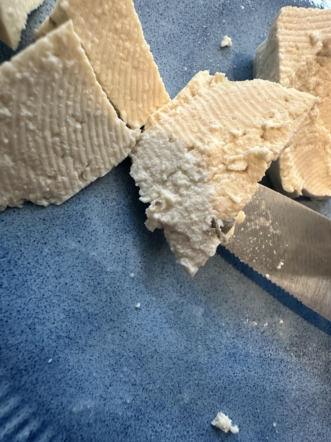 Tofu should be good for another month. No smell, it feels and looks good otherwise. But a few sections have this. I’m contacting the company but has anyone had this and know what it could be? It came out separately