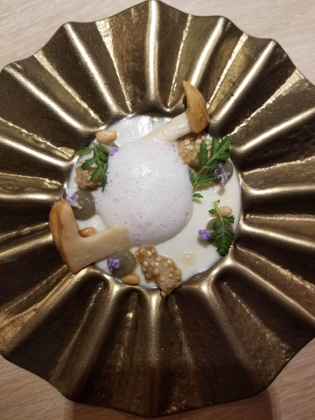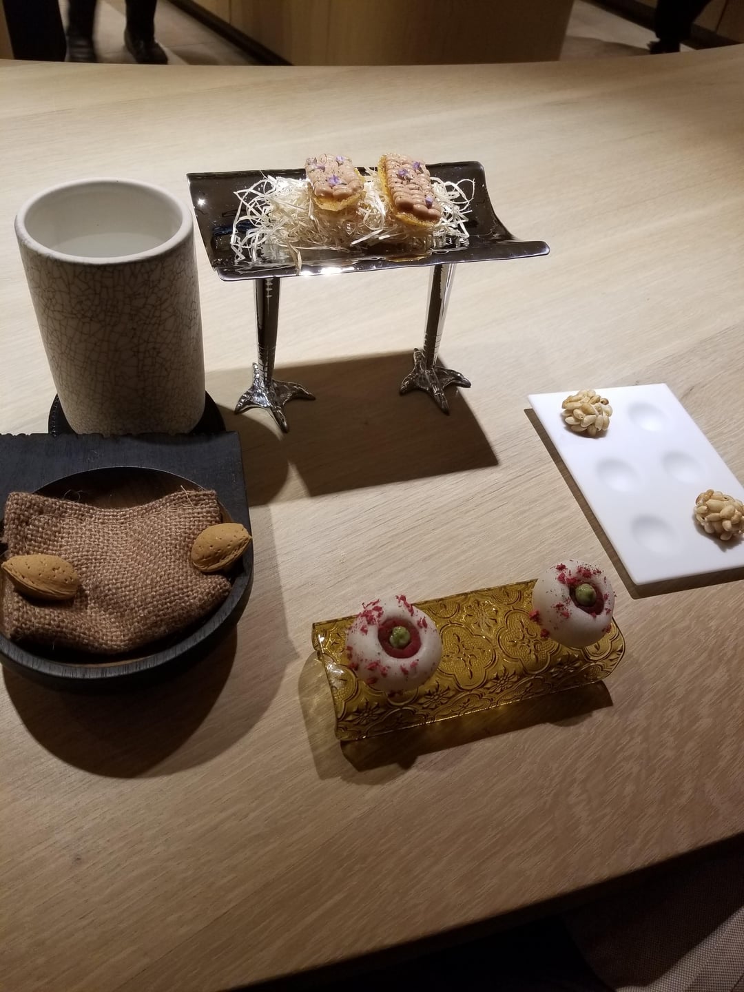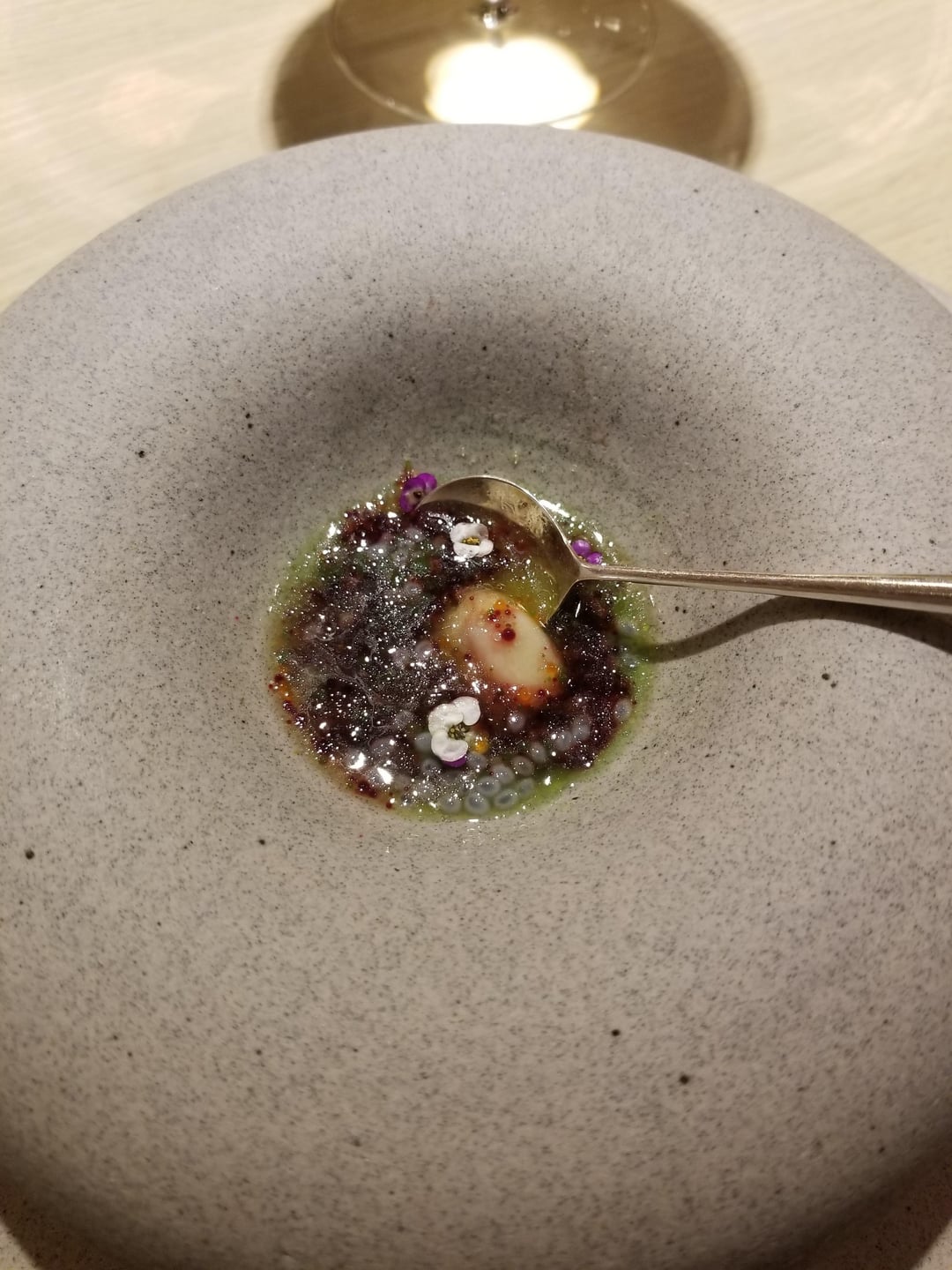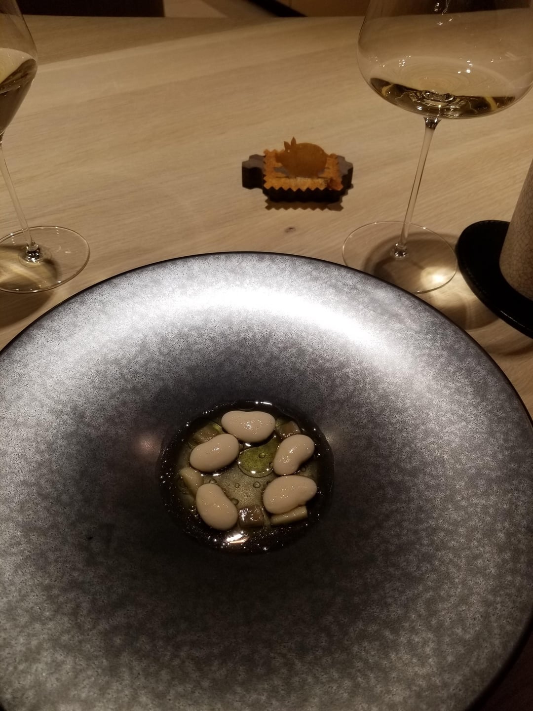 Plenty of molecular gastronomy influences, such as white beans that were in fact spheres full of liquid. A few years later, I encountered several similar ideas and techniques at Disfrutar. I didn't have much exposure to that type of cuisine in 2018, so at the time I didn't fully appreciate Somni; in retrospect, I'd say the team is world-class in the molecular gastronomy space.