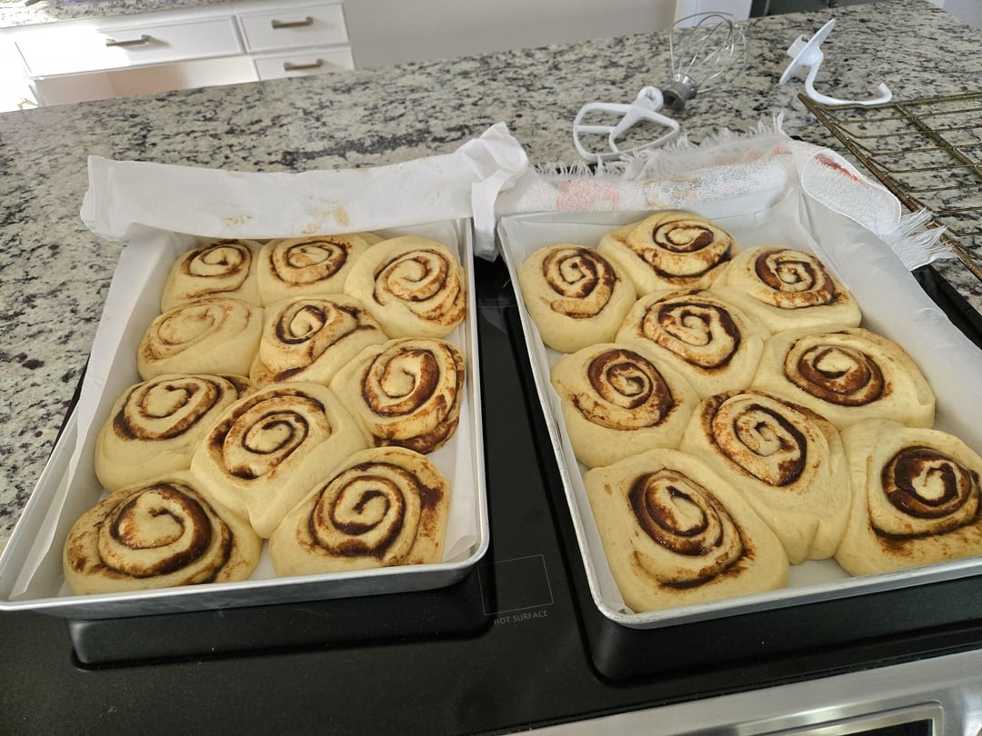 (My husband lives cinnamon rolls, I have a great, fluffy recipe, but it takes ages and is a real hassle, so I only make them once a year. I get up early on Father’s Day, get them started before I go to church, then come home and spend the next few hours making them and cleaning the mess while they rise and cook, and we have them for afternoon tea, then days after. Once a year is enough.)