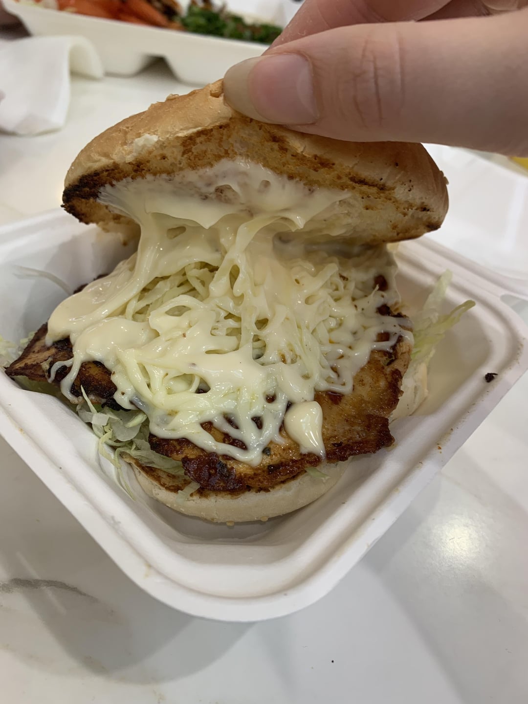 Estimates calories in this grilled chicken burger? Has grilled chicken, cheese, Mayo and lettuceby ernzinc 1 Comment Junior_Insurance7773 1 year ago A bit over 400Write A CommentYou must be logged in to post a comment.
