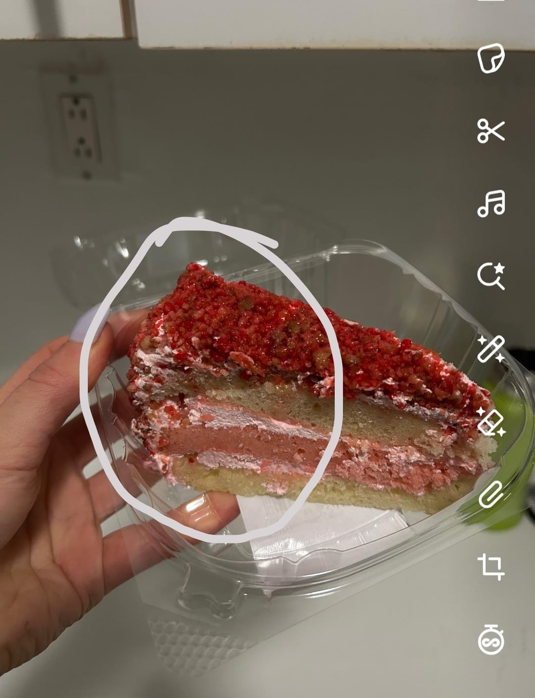 I ate the circled half of this strawberry crunch cake, is 200 calories too optimistic? Second pic is info on the cake but couldn’t find anything about calories.