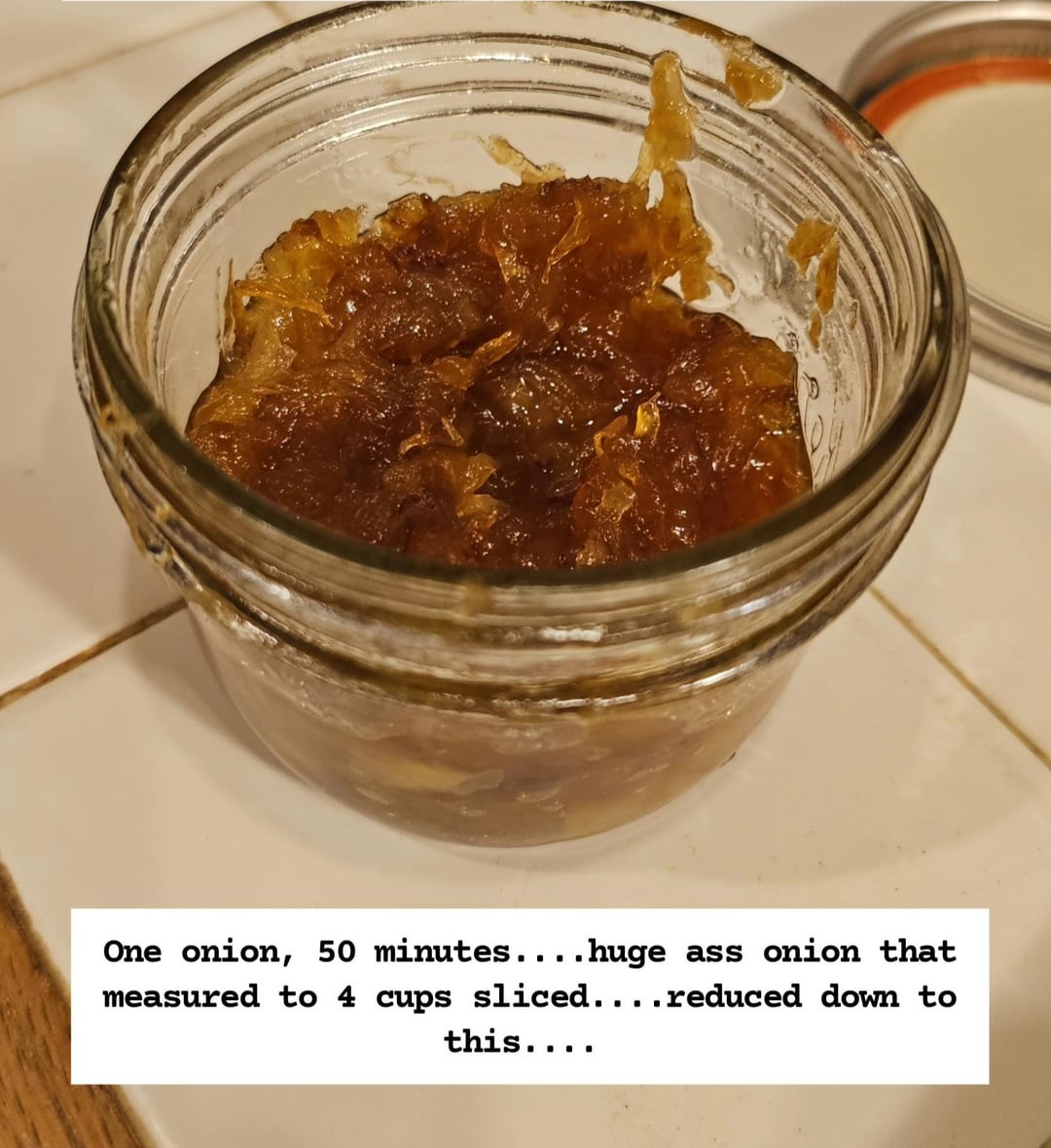 Tomorrow, I shall use all the other onions of similar size (4 total) and make a larger batch because by god this is delicious 🤤 A little bit of the jam goes a long ways, but I regret not making more…