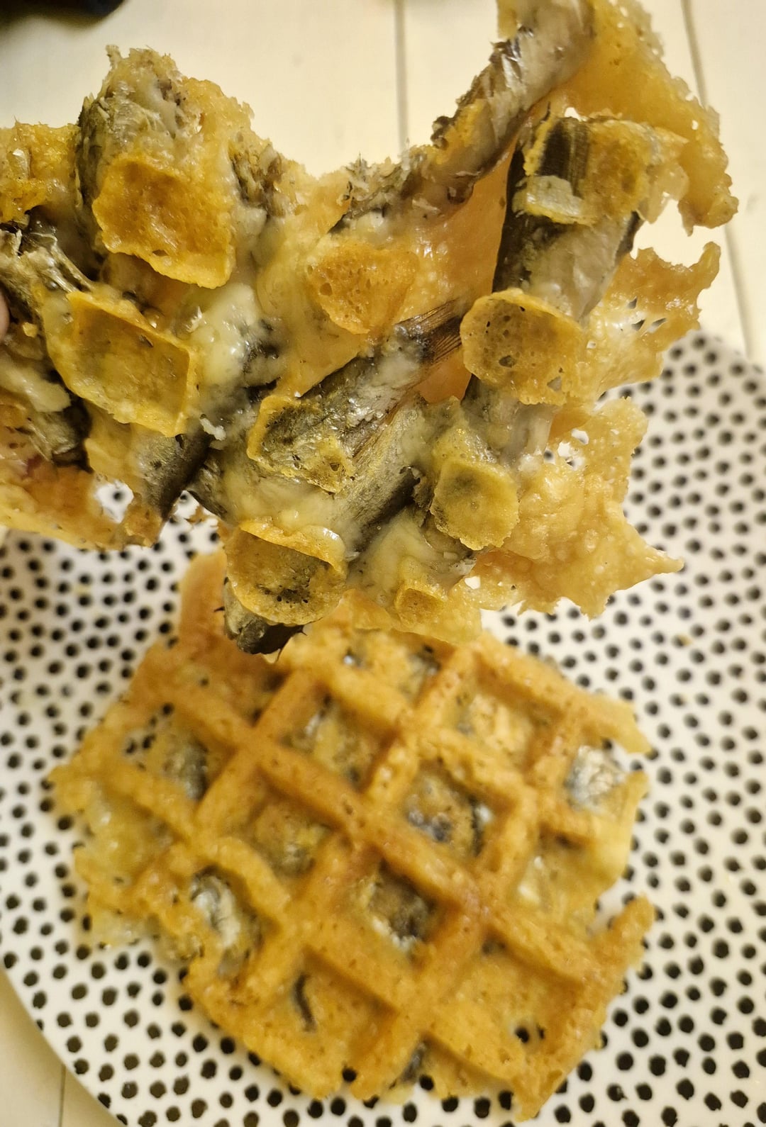 I am basically on my own version of a sardine challenge to get my holiday weight off but Im allowing some modifications like some olives and bit of cheese…i ran across the idea of making a sardine chaffle so i tried it.