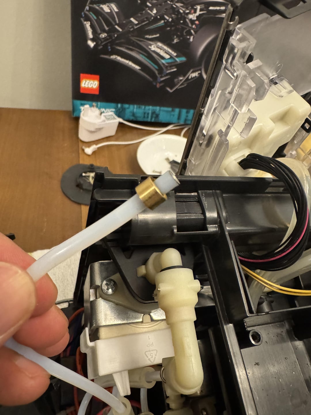 I’m stuck at putting the high pressure hose back into the brewing unit. It’s a couple of mm further out from where it should be meaning I can’t put the holding clip back in.