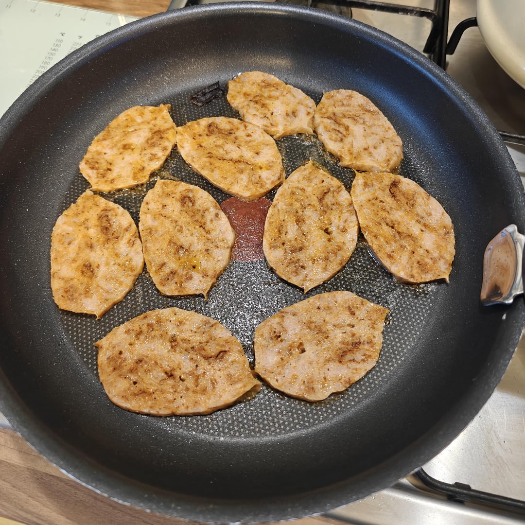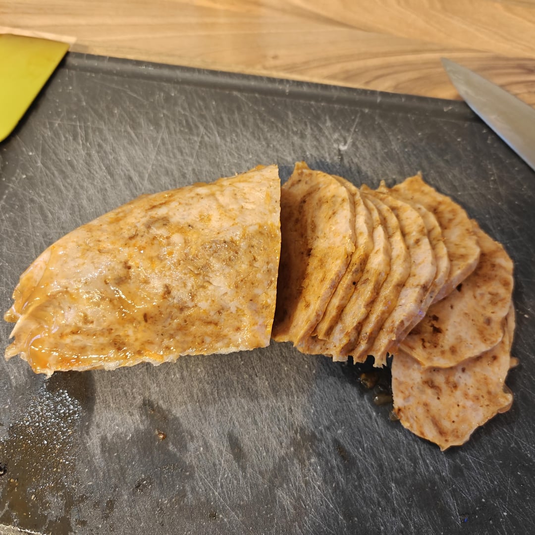 Mix spices into the pork mince, shape into a thick sausage and sous vide at 62.5C for 2 hours.