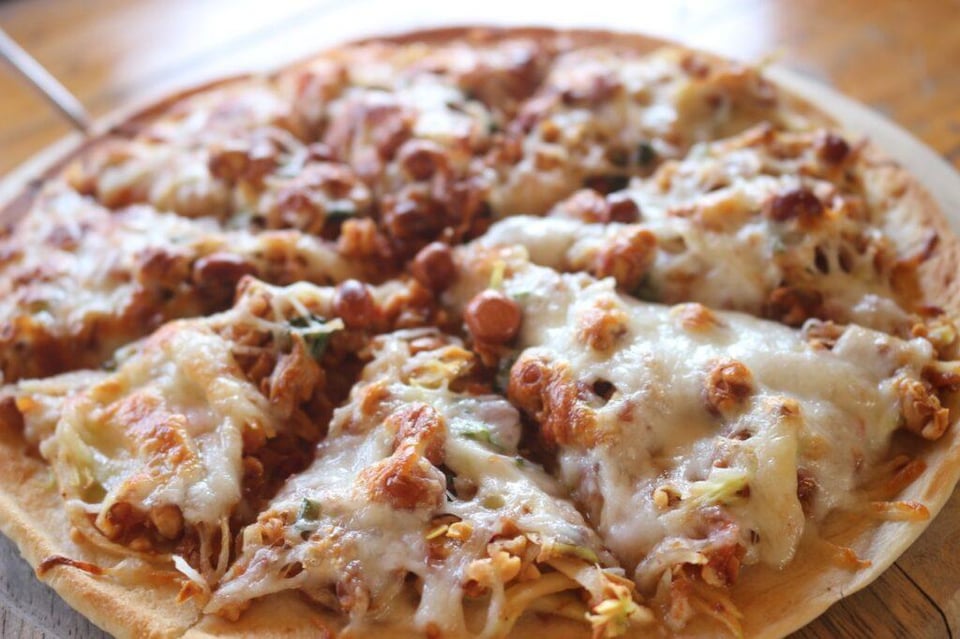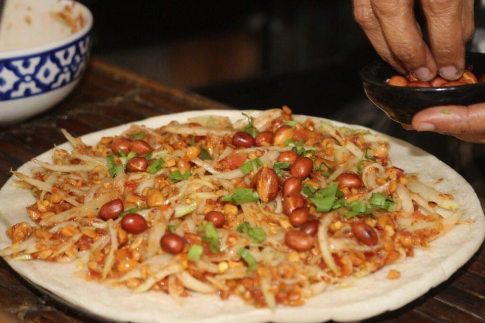 Crunchy peanuts – I don’t care if they’re boiled, they remain crunchy – on a pizza.