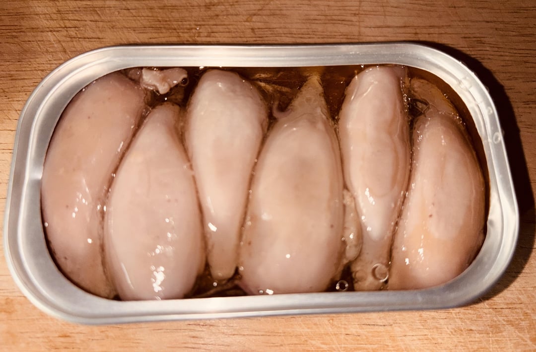 EScootyrant 1 year ago I’ve tried tinned squid, in ink many times (Squid a La Peña ~ Adobo style). I should try squid, with olive oil a shot.