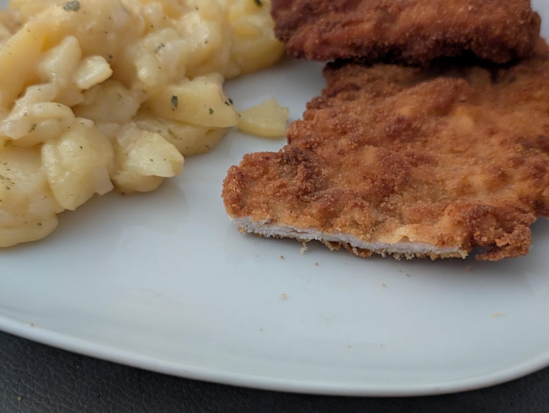 Schnitzel with potato saladby Worgo237 3 Comments ThoseWhoDoNotSpeak 1 year ago This looks amazing!Schnitzel is a food I grew up with and continue to love.We make it on a regular basis, and both, my husband and I love it (I introduced him to schnitzel and he loved it). random-euro 1 year ago Looks great, very nice looking schnitzel PetroniusKing 1 year ago 🤤👍😊Mmmmmm your dish looks very delicious like it is but I might add and runny fried egg and a wedge of lemon to create a nice sauce for the schnitzelWrite A CommentYou must be logged in to post a comment.