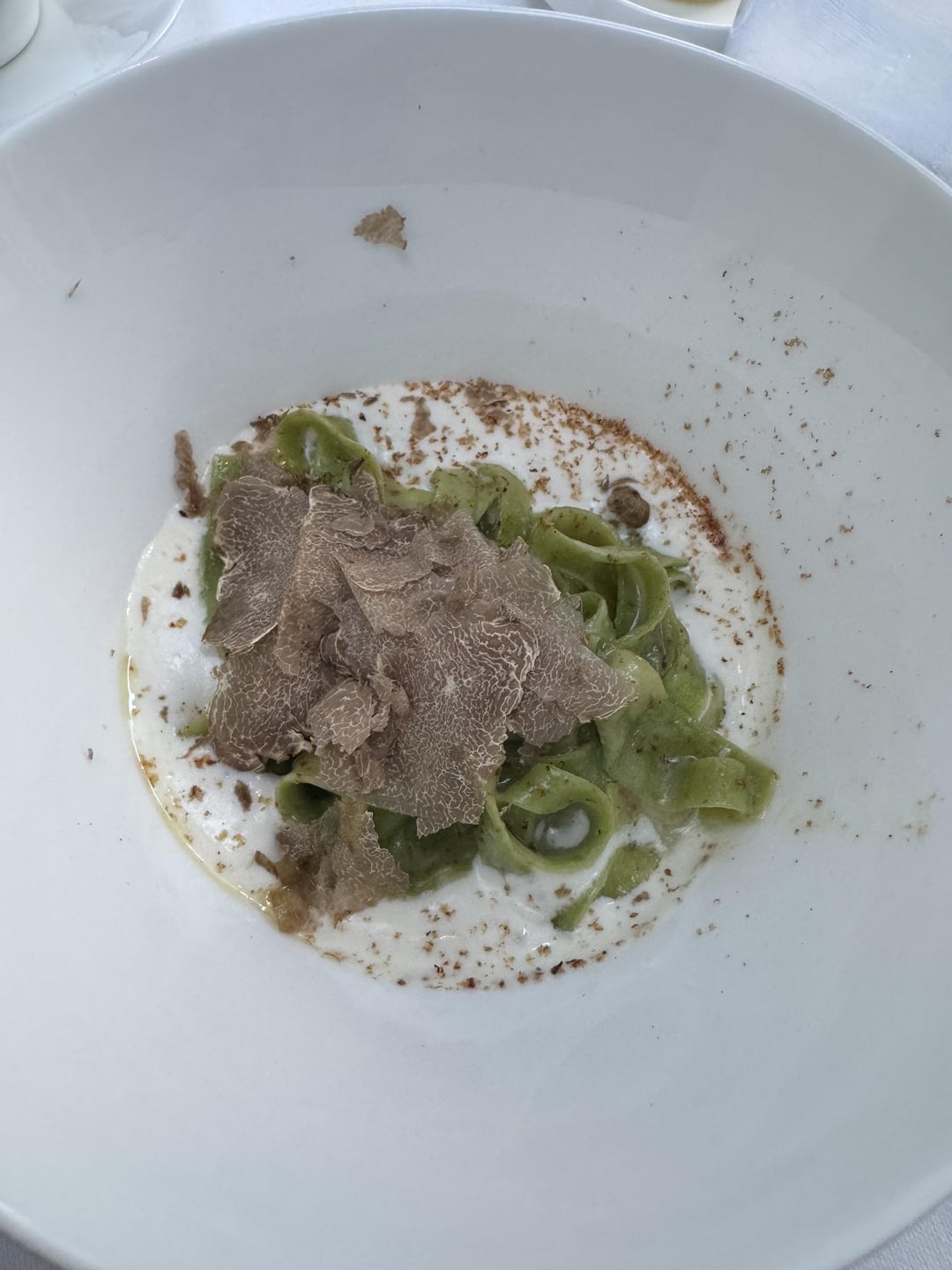 Black truffles shaved over spinach pasta with castelrosso (the best omg)