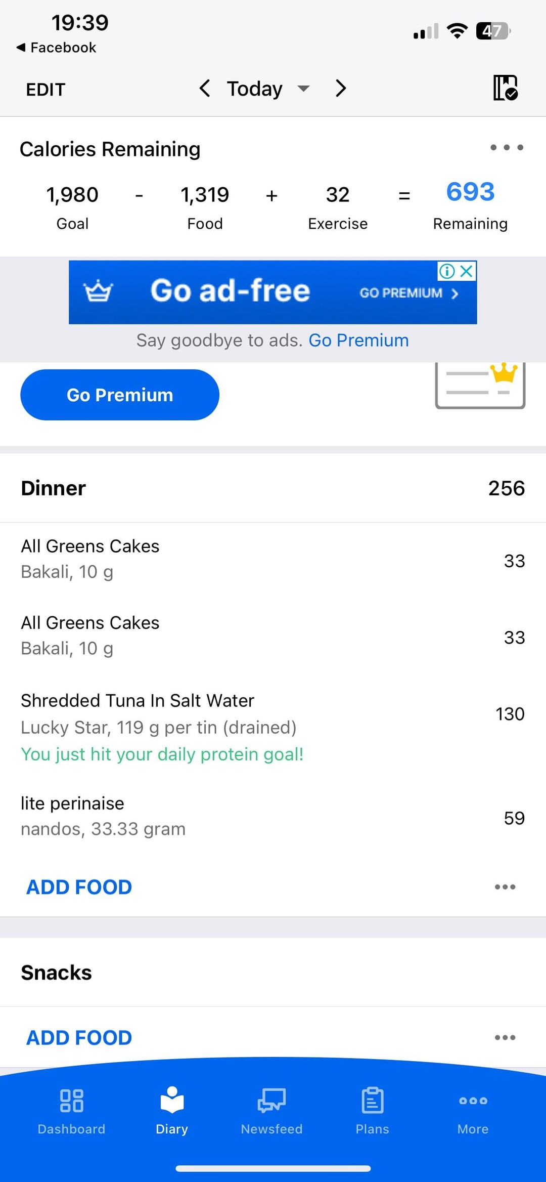 But basically, I’ve had breakfast and lunch today (already logged dinner because that’s what I am planning to eat) but I am literally not hungry at all which makes me think I may be tracking wrong. Although I weigh everything very thoroughly. Like to the gram.