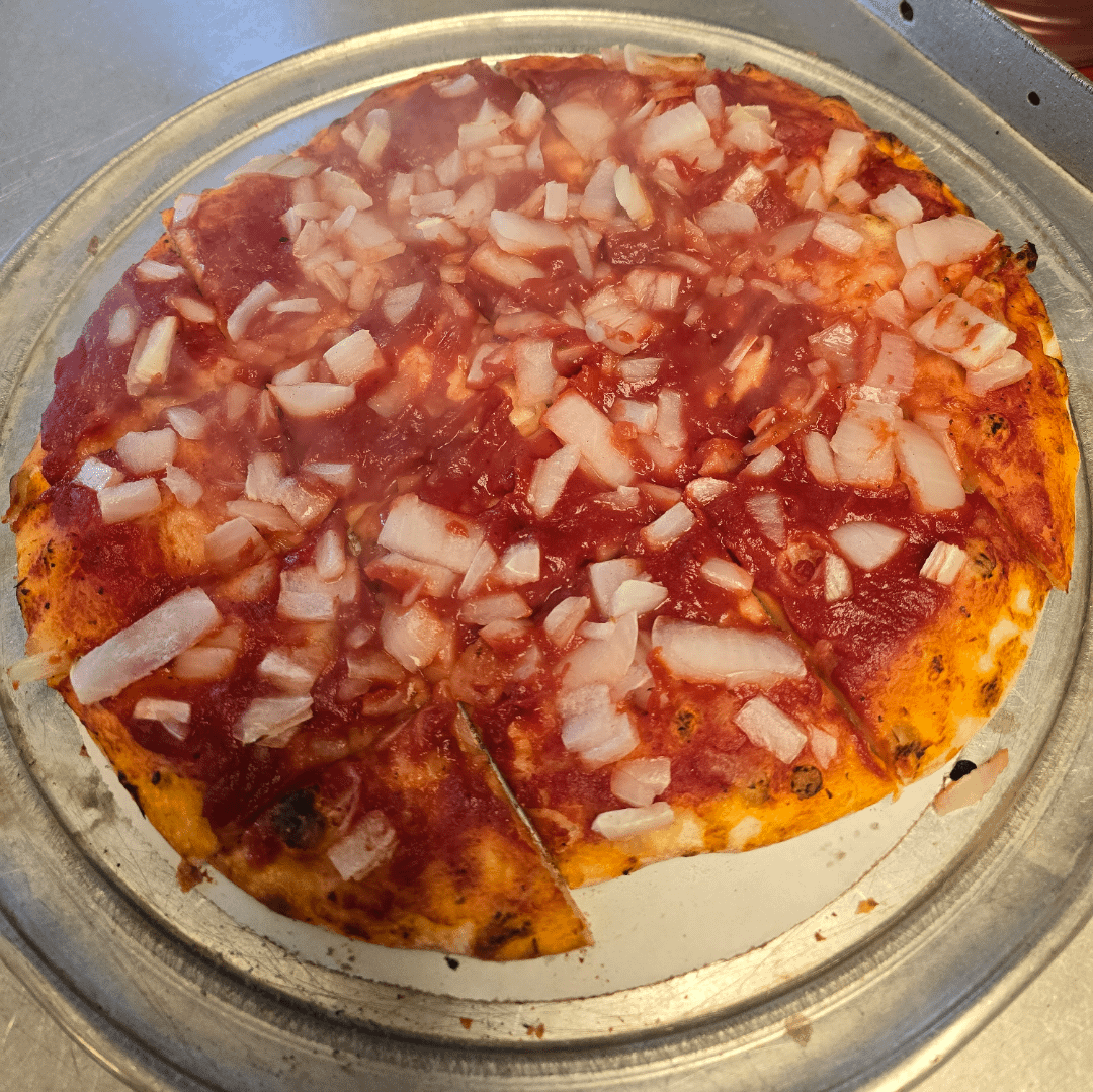 Look, I appreciate onion on pizza but no cheese, no veggies or anything else? Come on this is a crime against the poor souls in the metro that will have to suffer through this persons consequences