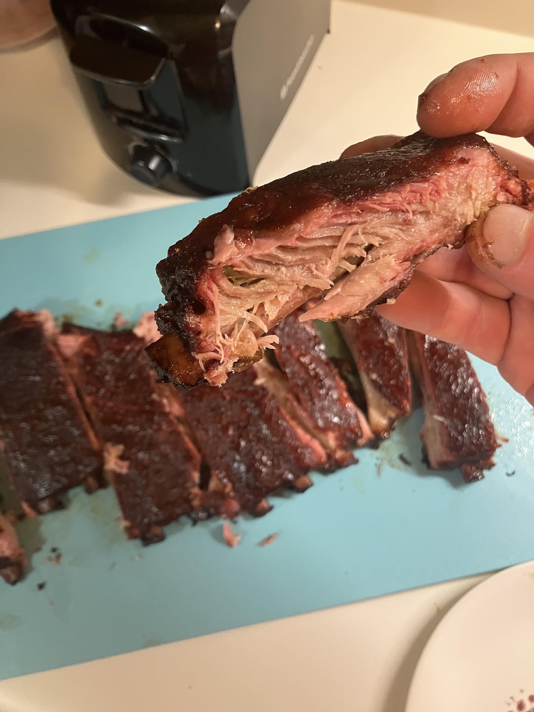Rubbed with Memphis dust. Modified 321 method. B+B coals with applewood. by Agitated-Pick-4735 3 Comments Visible_Ad5745 9 months ago Looks great to me. I’d eat those all day long. Good work! Acceptable-Dust6479 9 months ago How long do you let the briquettes sit in the chimney before dumping? mortfred 9 months ago That dog’ll huntWrite A CommentYou must be logged in to post a comment.