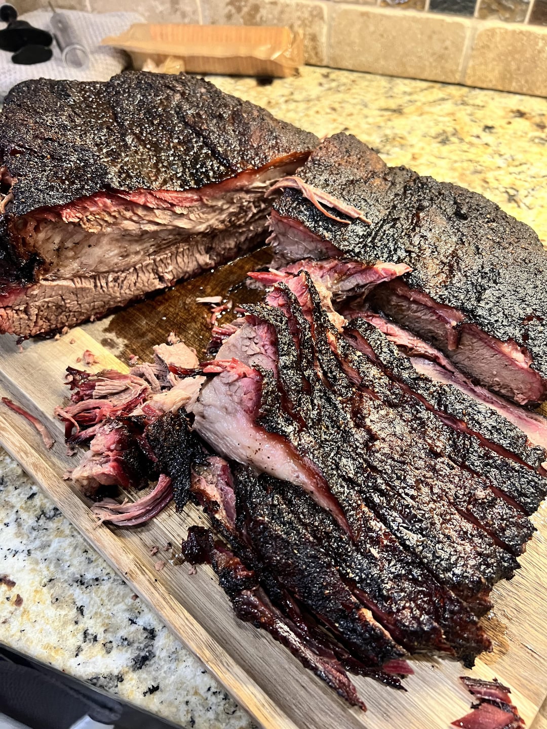 Followed the Smoking Dad BBQ recipe with some hiccups…details below. Ended up tasting delicious and had a great night. Kept everyone hungry till I pulled this guy out of resting.