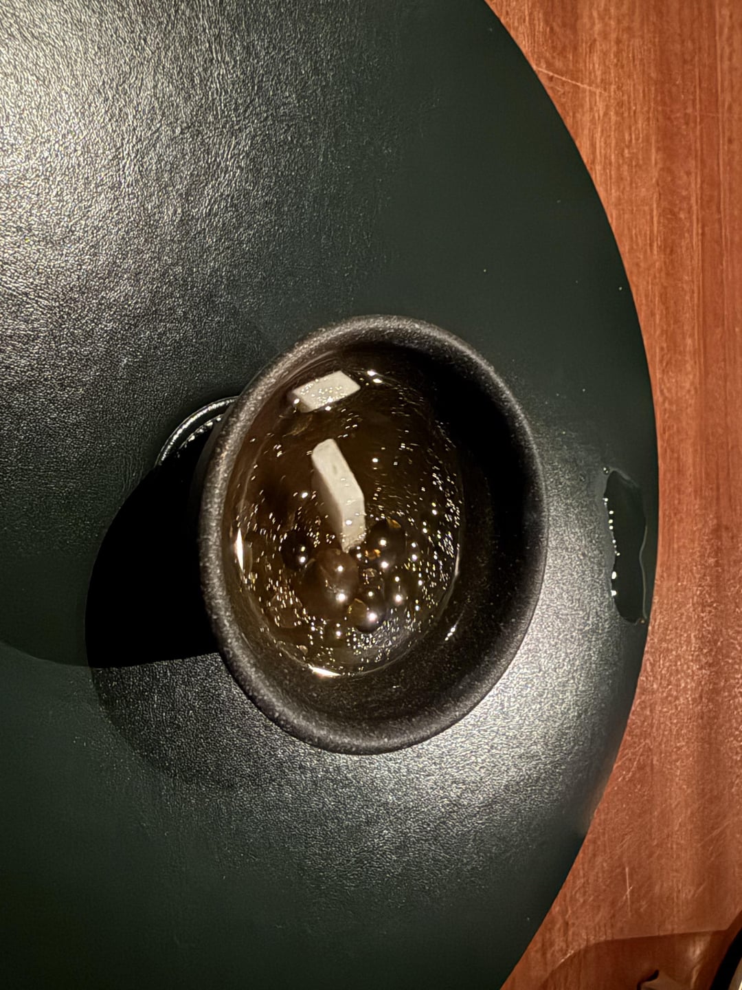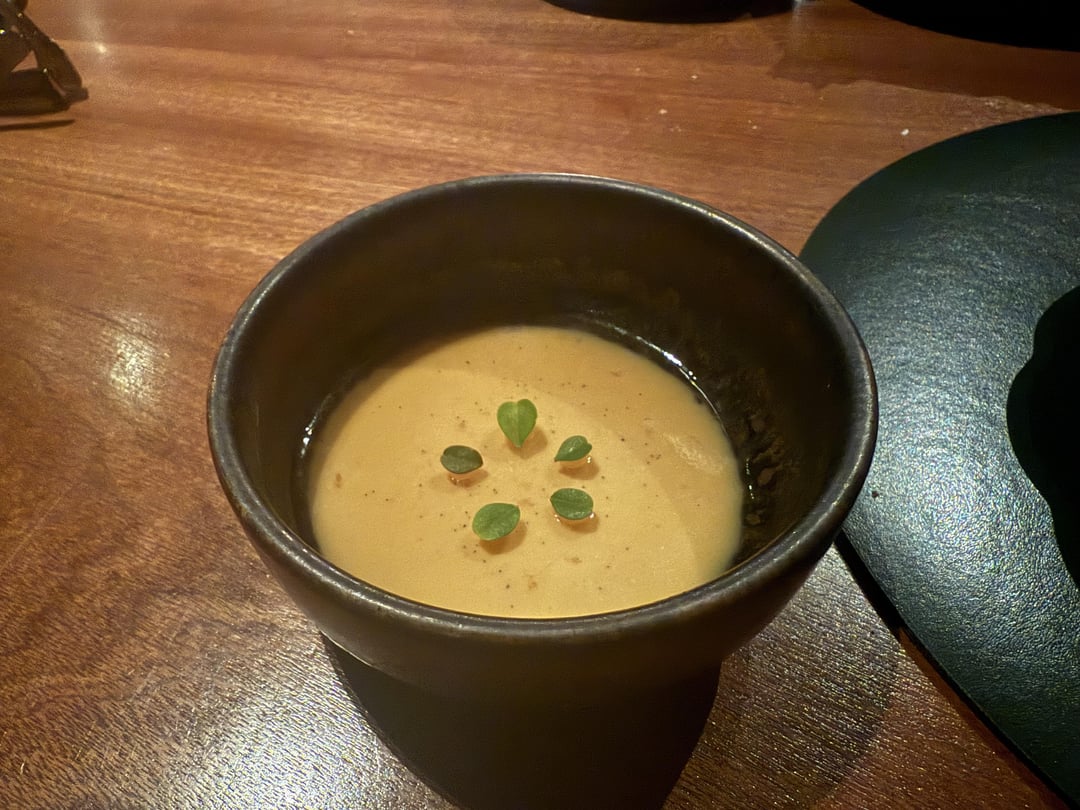 Amuse Buche – mushroom broth. Extremely tasty and rich, beautifully clear broth.