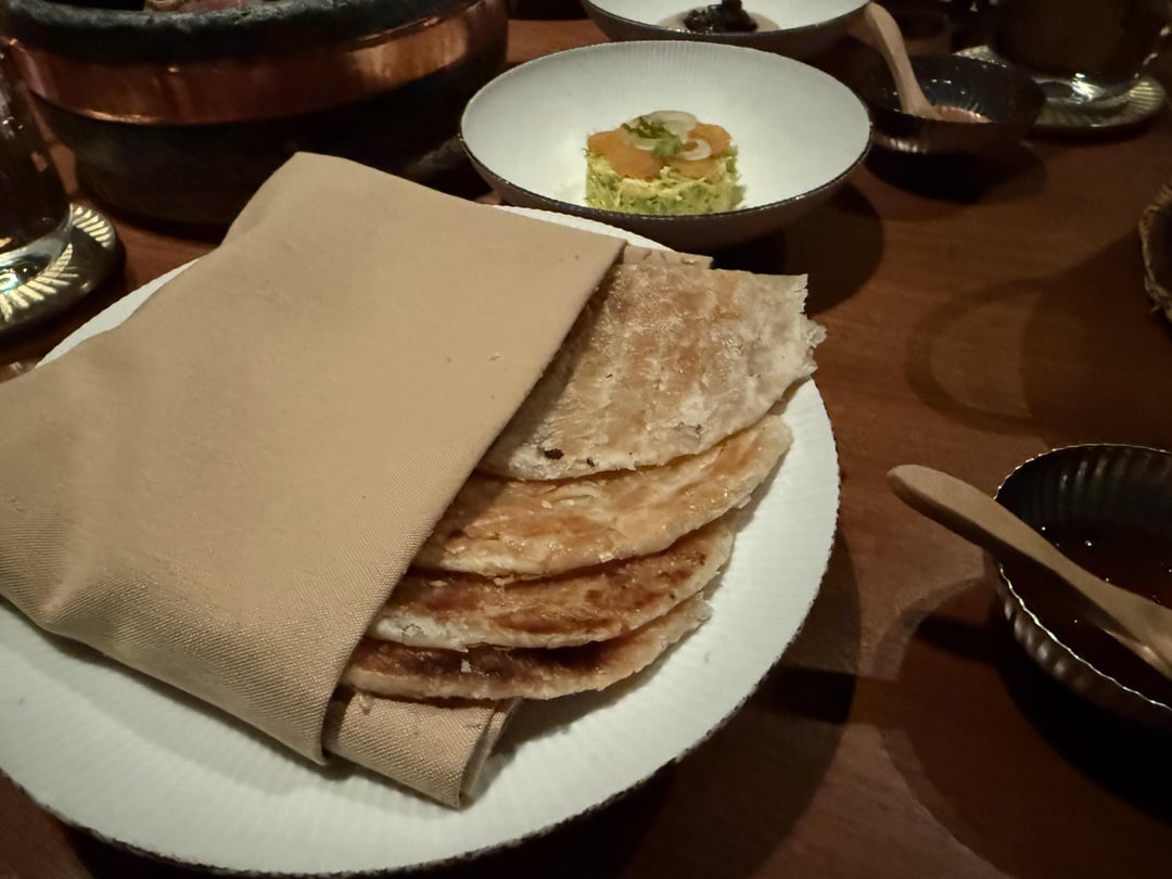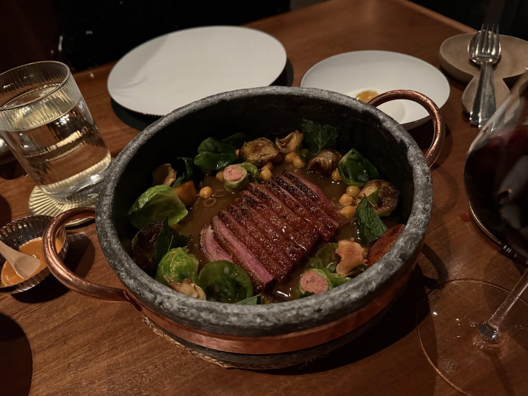 A5 Miyazaki Wagyu and Duck. Served with the pancakes and dips, these were interesting, the Wagyu also had cubes of beef tongue, and the duck served with a savory sausage. Good, not great.