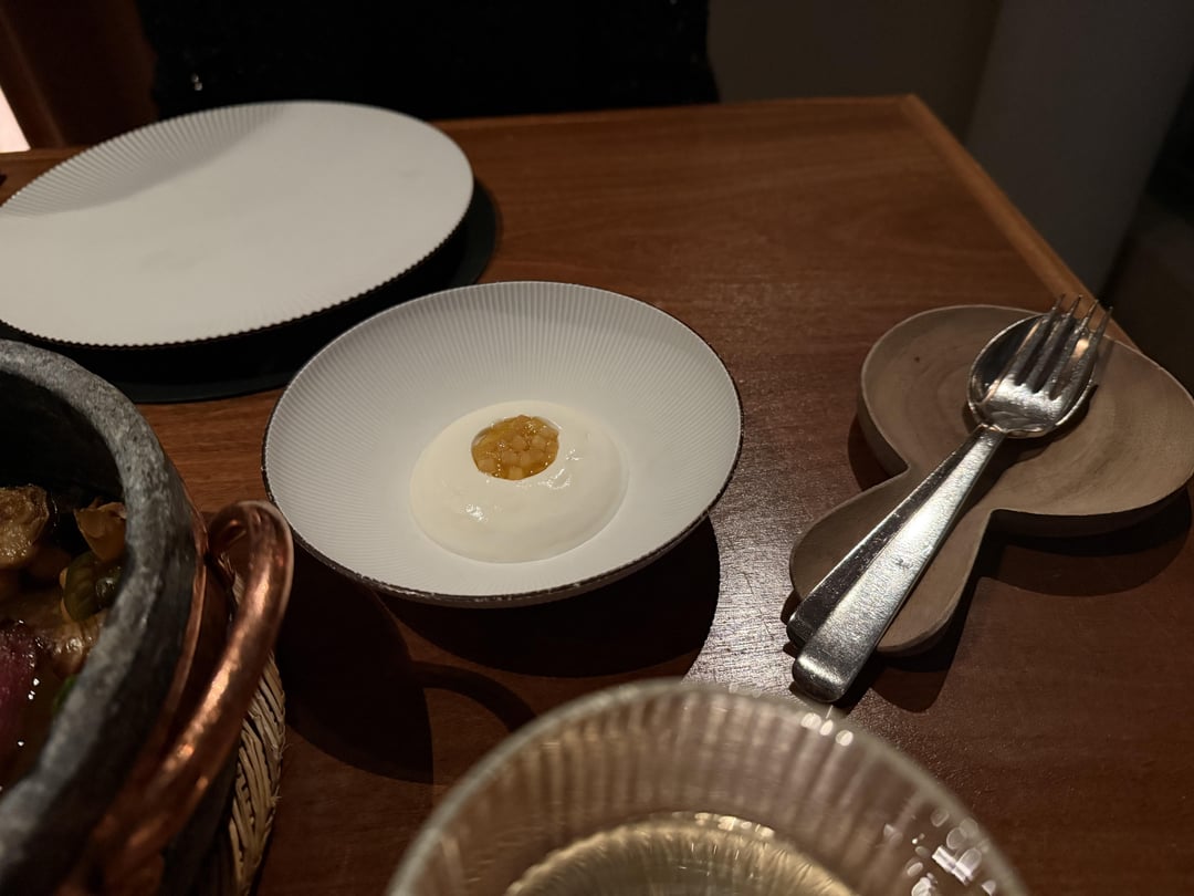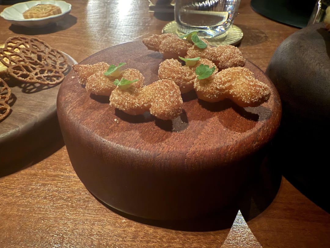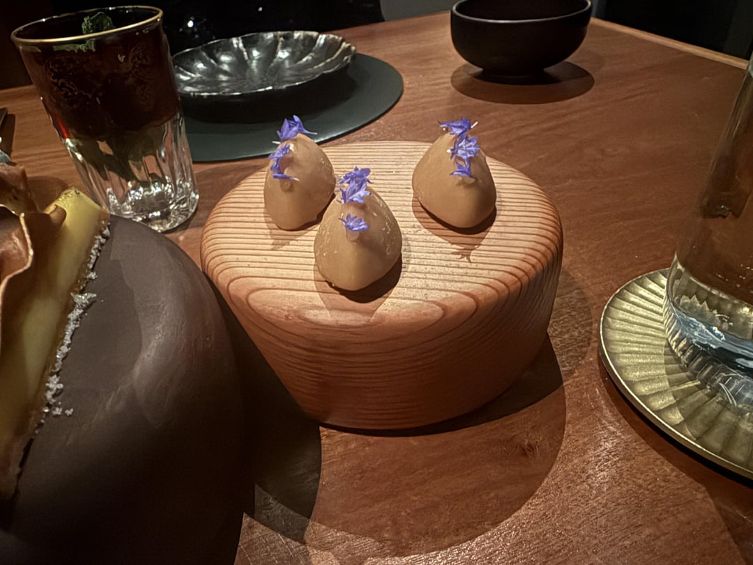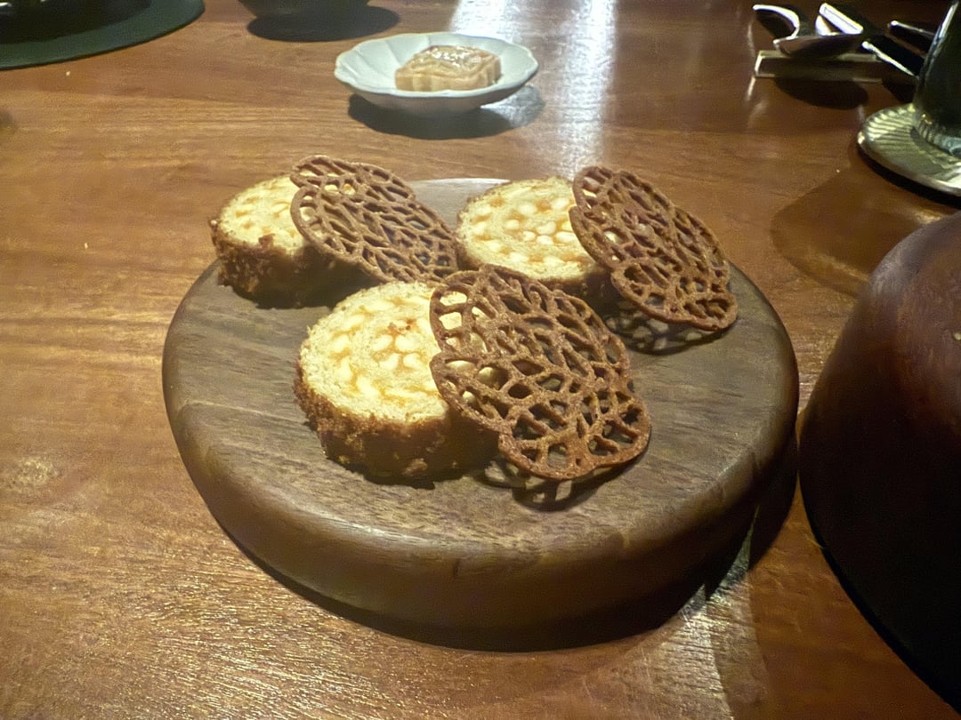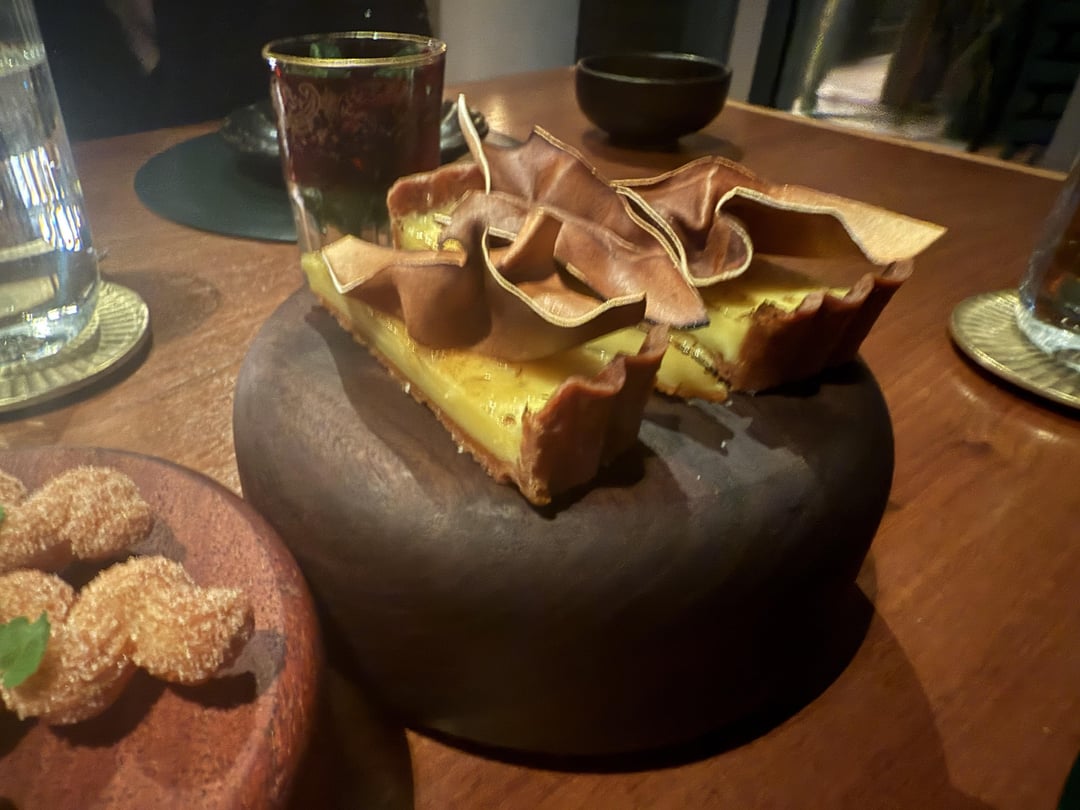 Dessert was ice cream quenelles, sweet potato crullers, sweet potato Swiss roll, tart, and custard. The desserts were fun – but by now it was so much food I was overfull and wasn’t able to fully appreciate it.