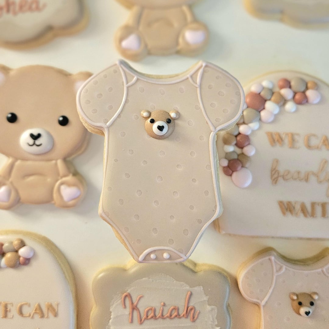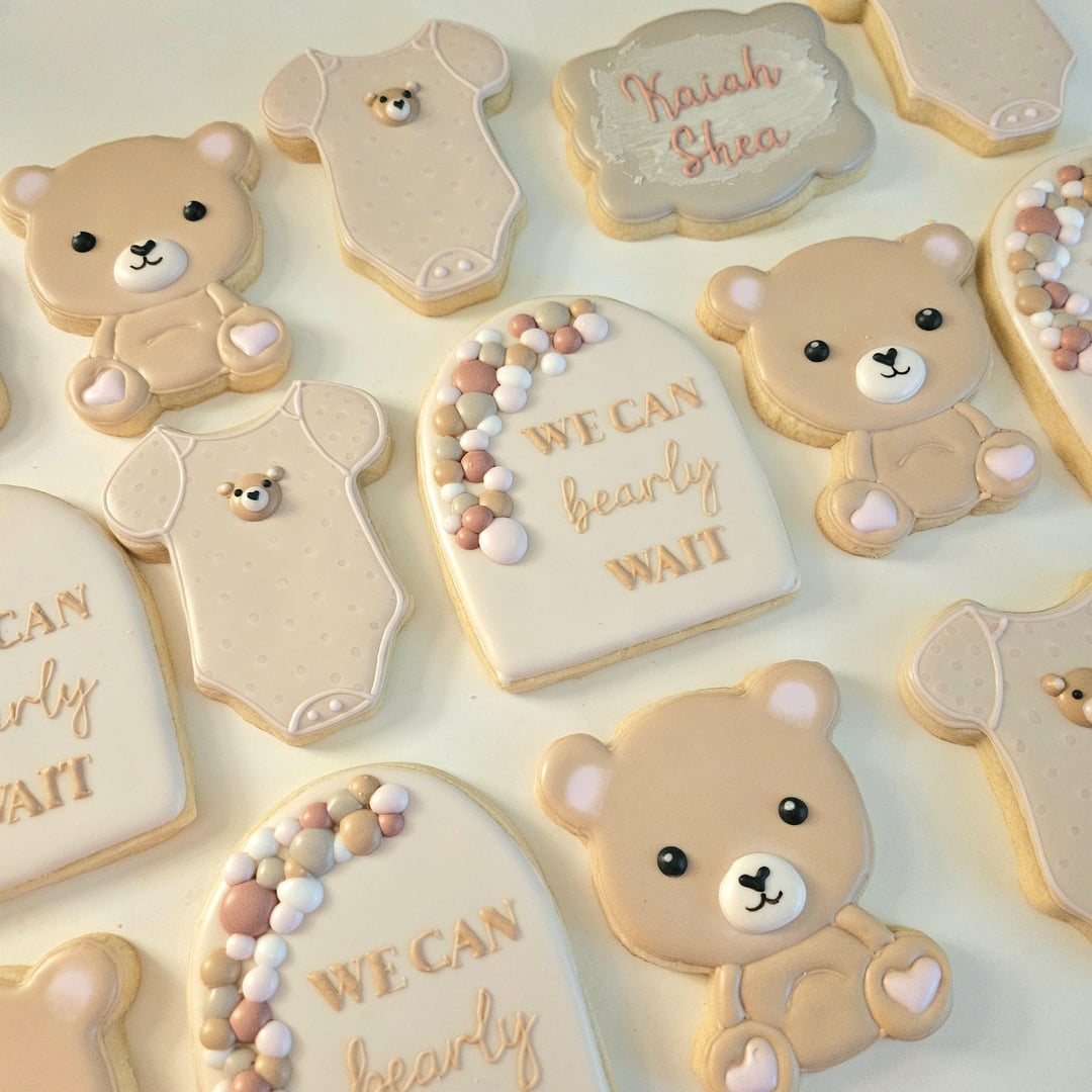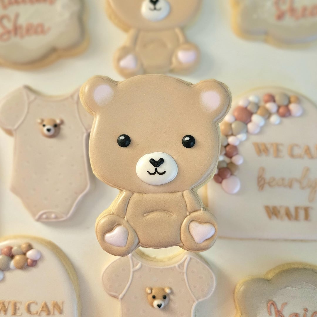 I wanted the bear to match the one on her party invite, but I didn't have the right cookie cutter, so I cut it out with a knife 😅 It was my first time doing that and I am so pleased that it turned out as well as all the others.