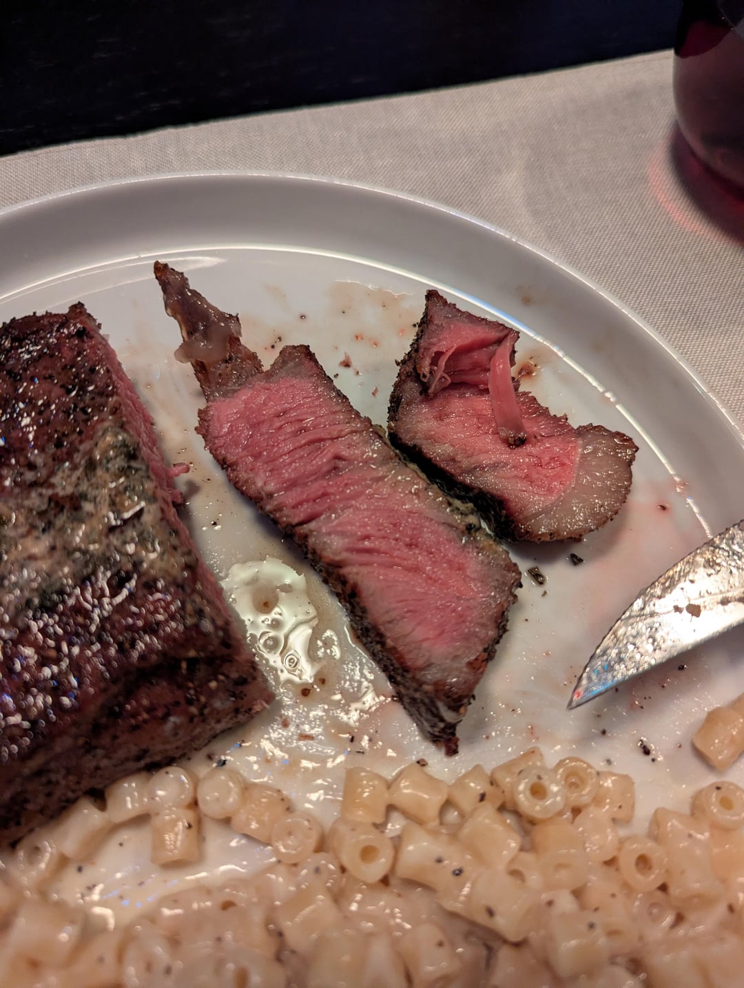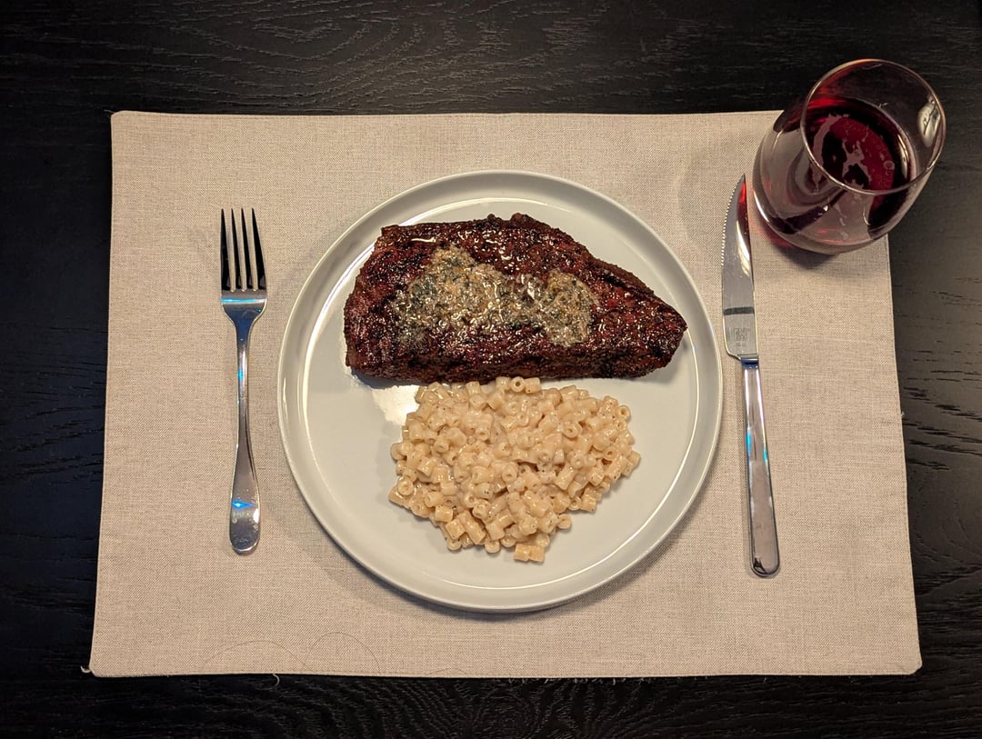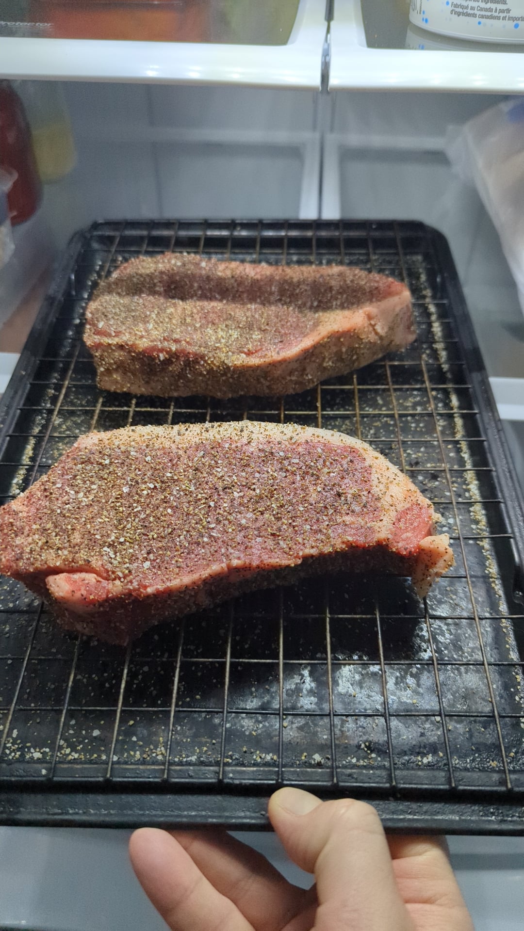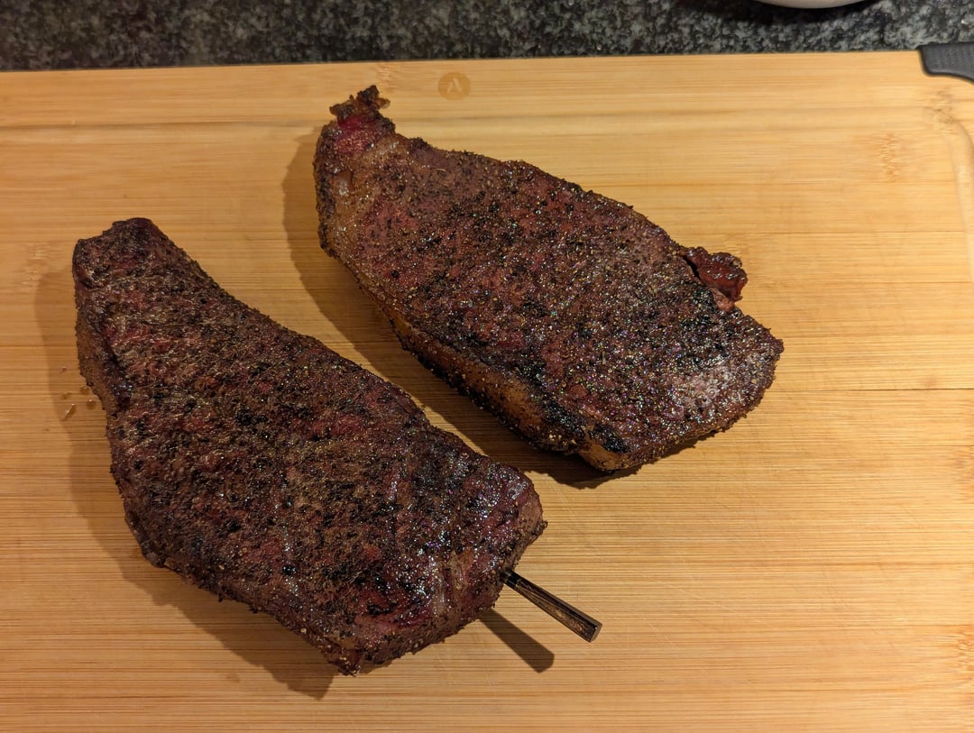 Dry brined steaks overnight with brisket rub. Smoked with Fogo + oak at 250f until internal temp hit 110f. Got the Joe to 750f for the sear, about 30-45 seconds per side. Rested the steaks with my compound butter. Great results! Amazing sear and wall to wall med rare.