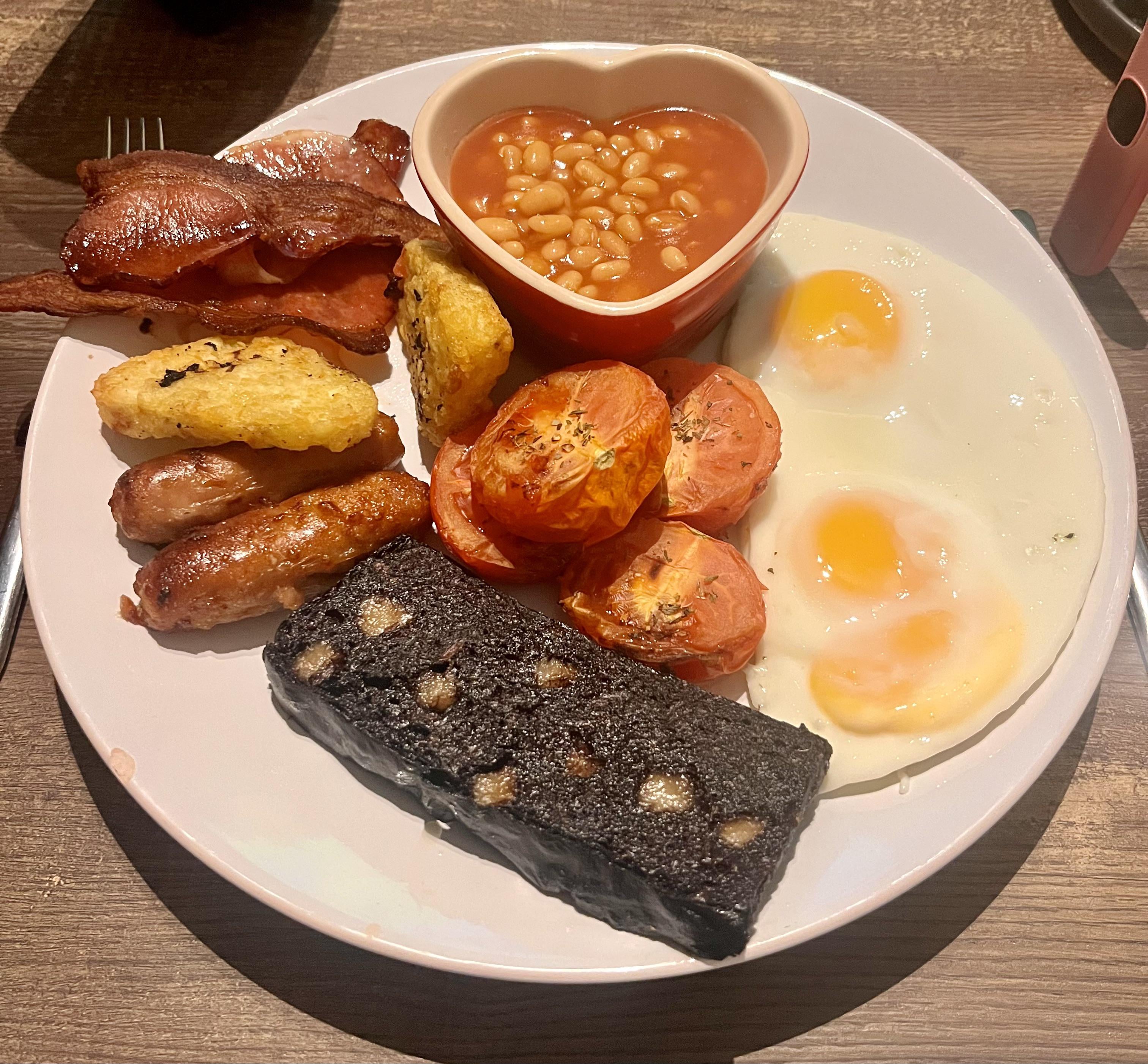 Biggest bit of BP I’ve ever bought from the butchers – it was bloody lovely! Other half had shrooms and beans on the plate. I like mine separate! Also had a bonus double yolker but one of them sadly popped. Also a pile of toast out of shot 👌🏻
