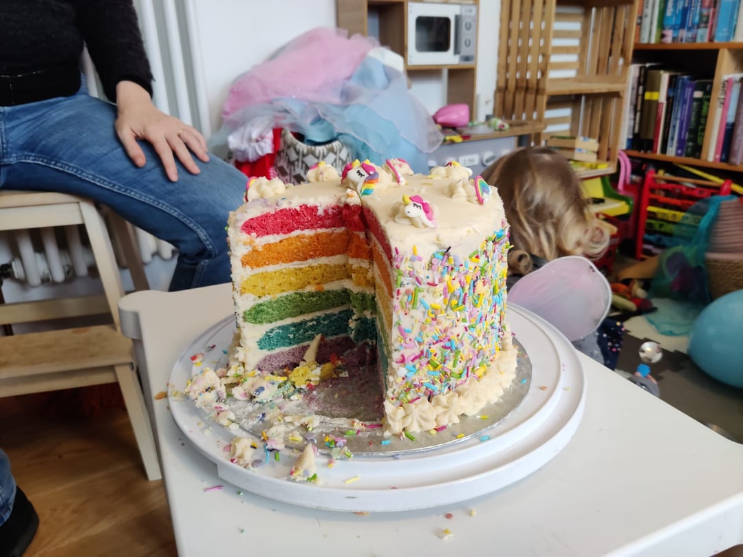 This is a 6 tier cake with different colors. It’s amazing. Happy birthday little one!!
