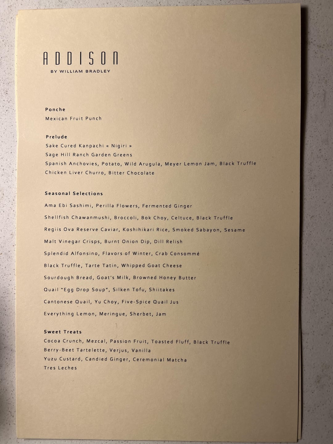 Ate at Addison last night in Del Mar (San Diego). Pics are little dark because the lighting is dark inside the restaurant.