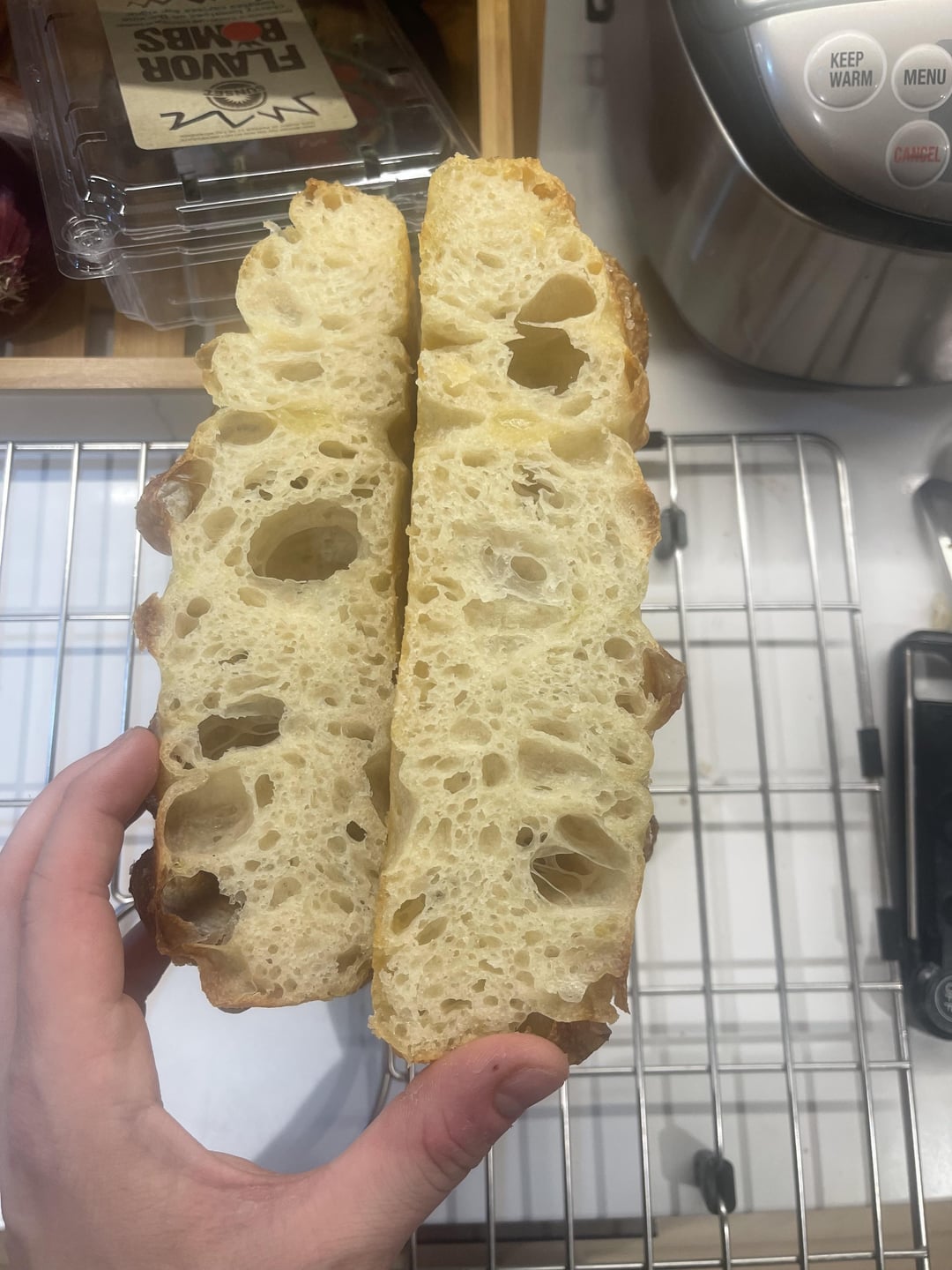 optimusgrime23 1 year ago This focaccia resulted in a small oil fire and some oil burns on my face but it still came out incredible lol