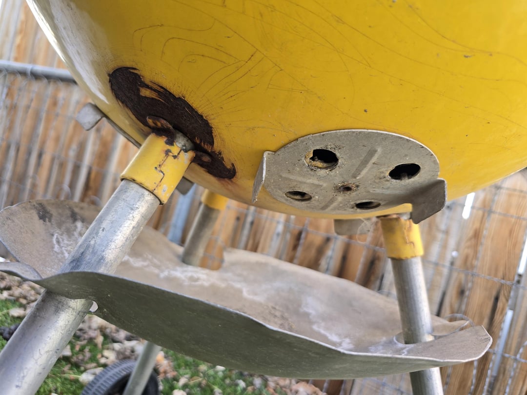 Fwiw, the yellow kettles are really rare, it’s impossible to find them without rusted lips and leg sockets unless you ride your unicorn to get it. What’s kool is they’ll turn an orange color when they heat up. Dont bank your coals against the inside walls it’ll burn off the finish. Nice find by the way