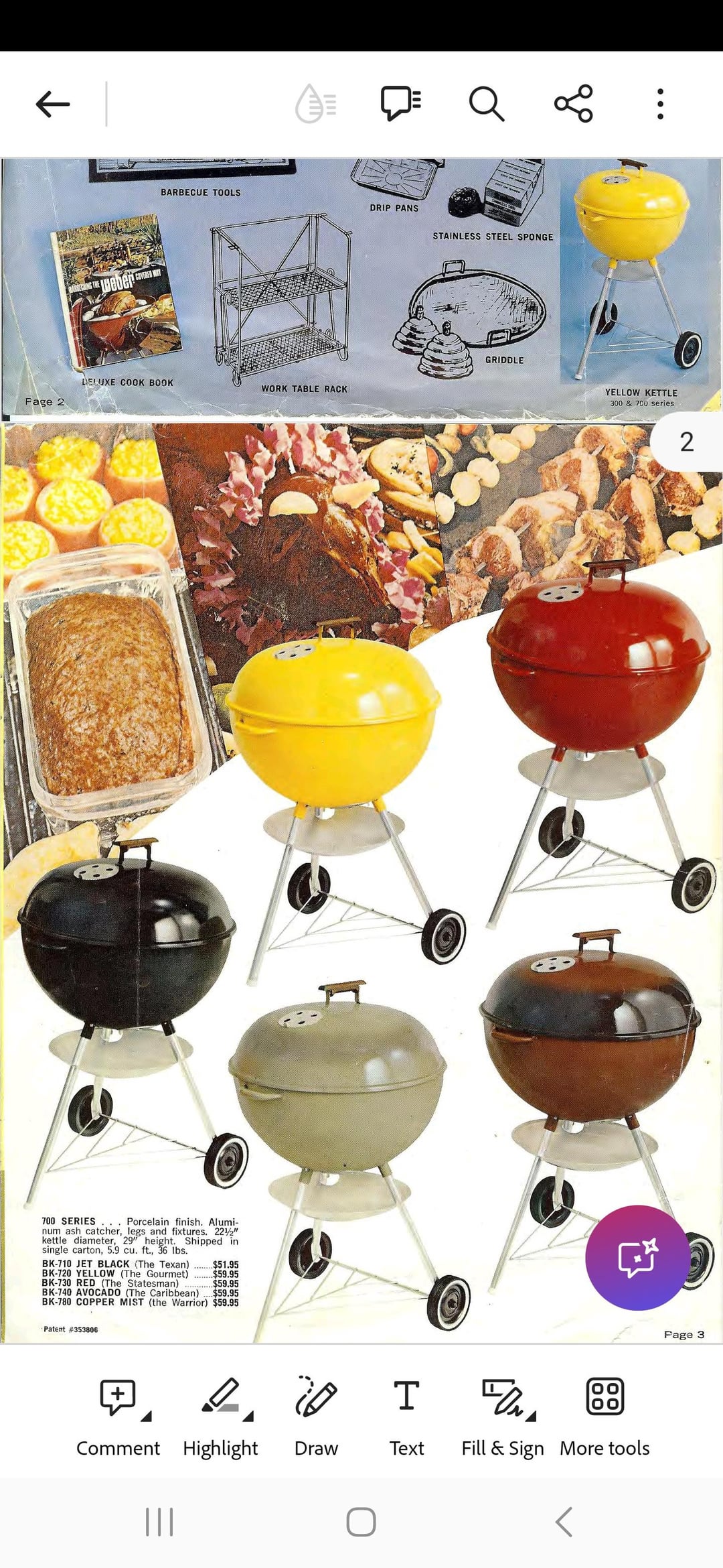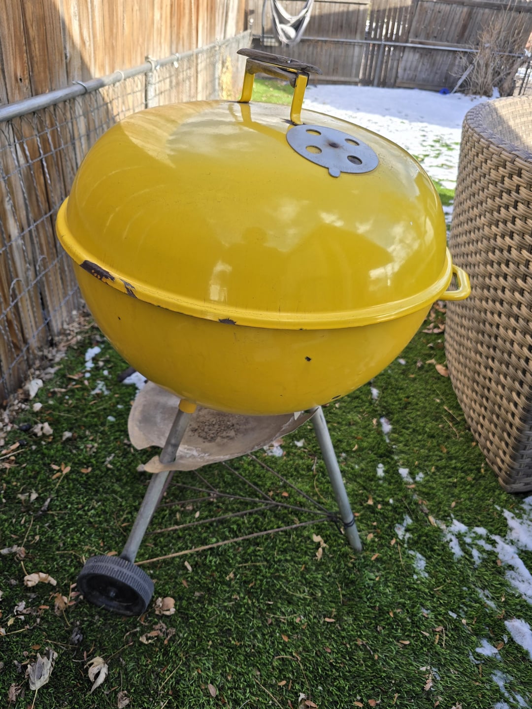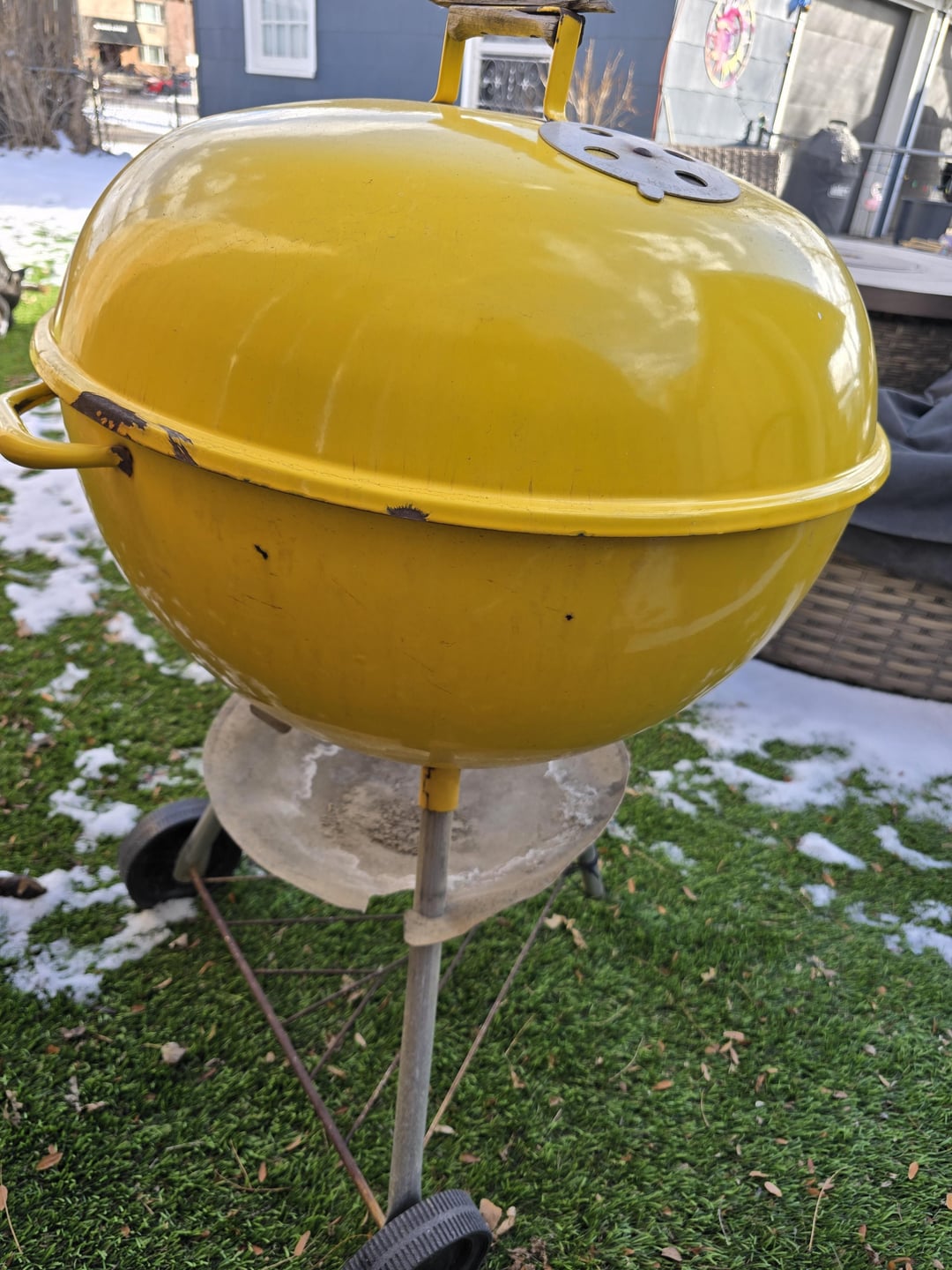 Hi there! I'm new to the group and I wanted to see if therenis any significance to my vintage yellow Kettle Weber. I think it's a 1973 (BK-720) "The Gourmet", based off this 1973 Weber catalog. Any info about the grill or opinions on its current condition welcome!