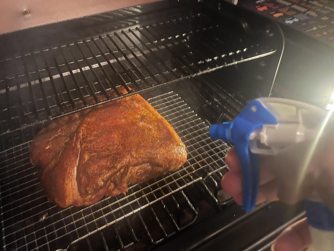 5 hours on 225°F with the Super Smoke setting. Spritzing every 90 minutes