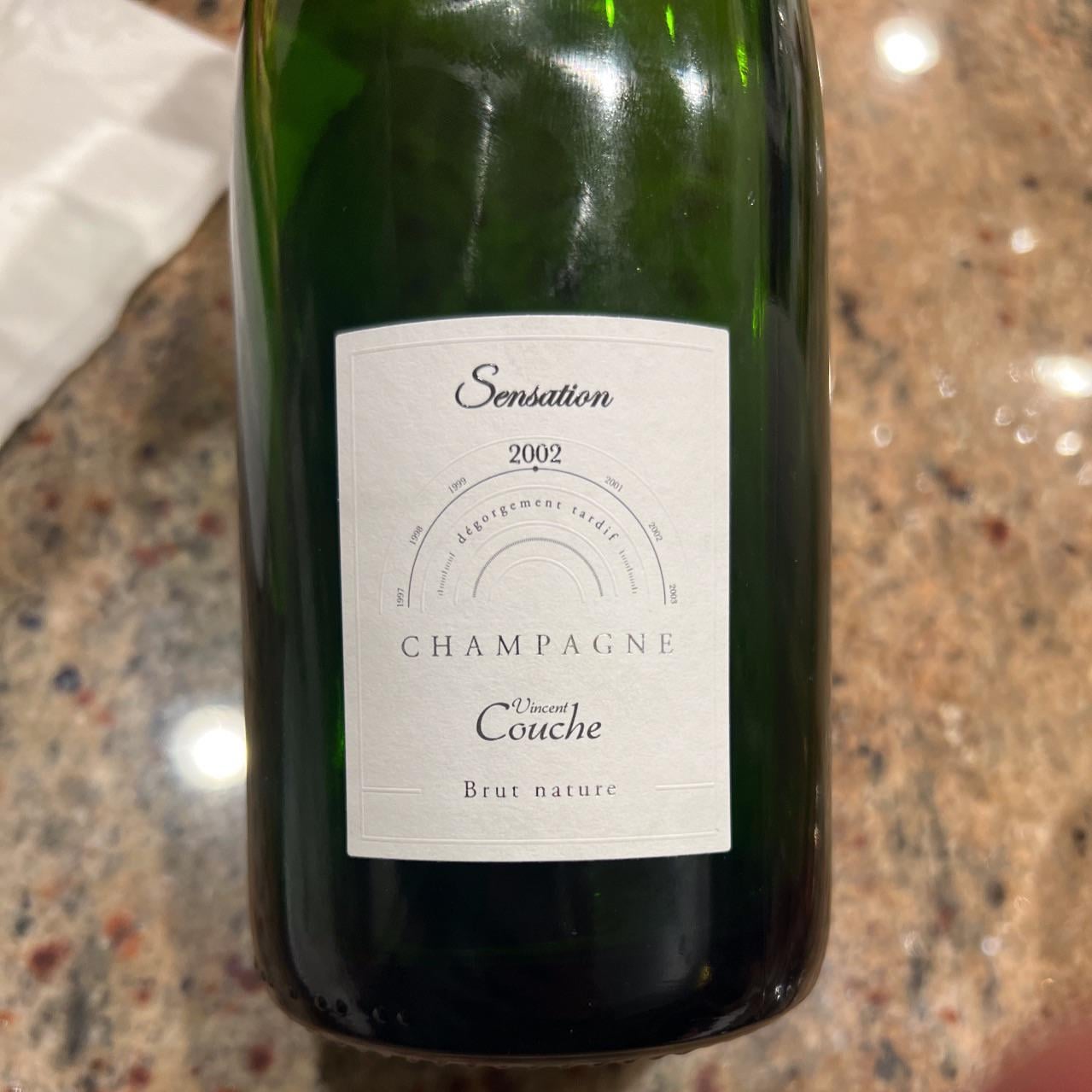Natural wine producer. Ages his wines FOREVER before release. I believe the 2002 was in the bottle on the lees (aka yeast) for 20 years before they disgorged (aka clarified) it. Vintage champagnes only need to be kept for 3 years on the lees. Most good producers will go anywhere from 5 to 9 years, so this guy is insane. 2002 is considered an epic vintage in Champagne. Most big name wines from this vintage sell for three times the price of Couche … on the low end. The grapes he uses are from the Aube region, so further south than where most other Champagnes get their grapes. His grapes get very ripe and are completely organic and biodynamic. That’s why he can do a Brut Nature (no added sugar) and the acid is still very balanced. Because he’s natty, expect some wilder, funkier aromas and flavors, but nothing too weird. It’s good juice.