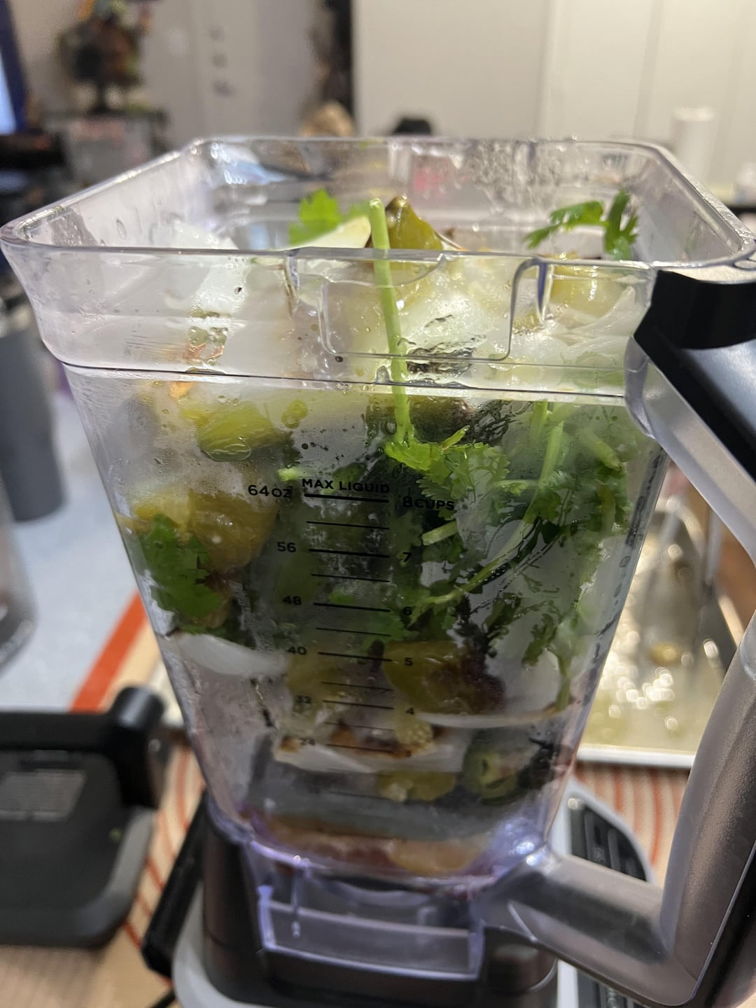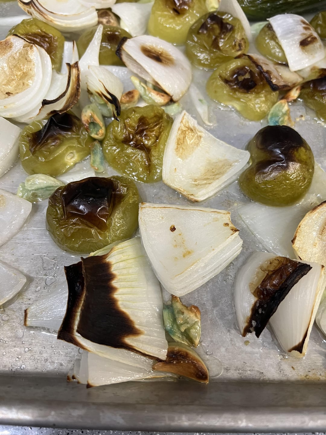 Roasted everything except the cilantro under the broiler. Had to google why my garlic turned blue 😂.
